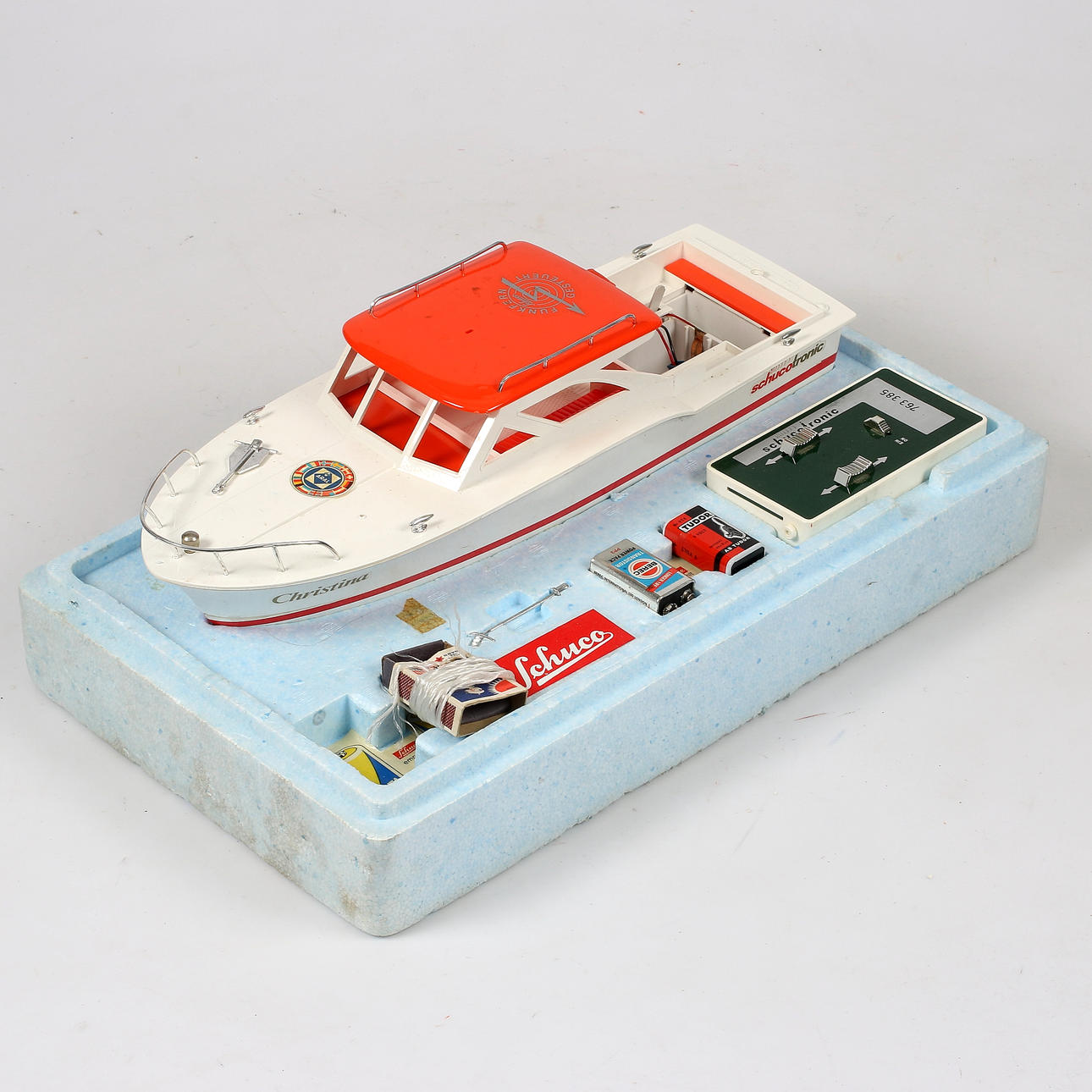 MODEL BOAT with REMOTE CONTROL, plastic, "Christina", Schuco.