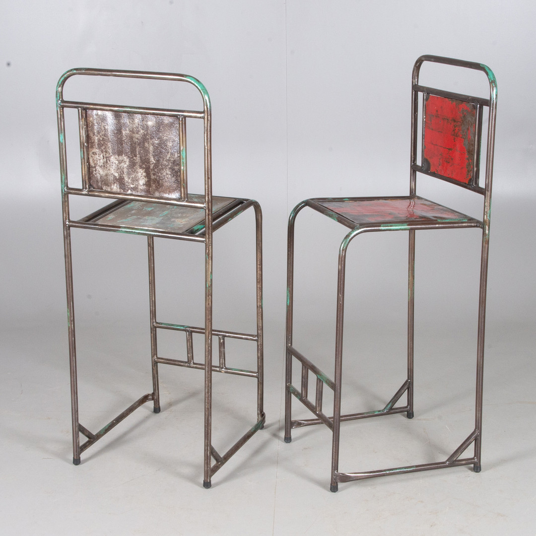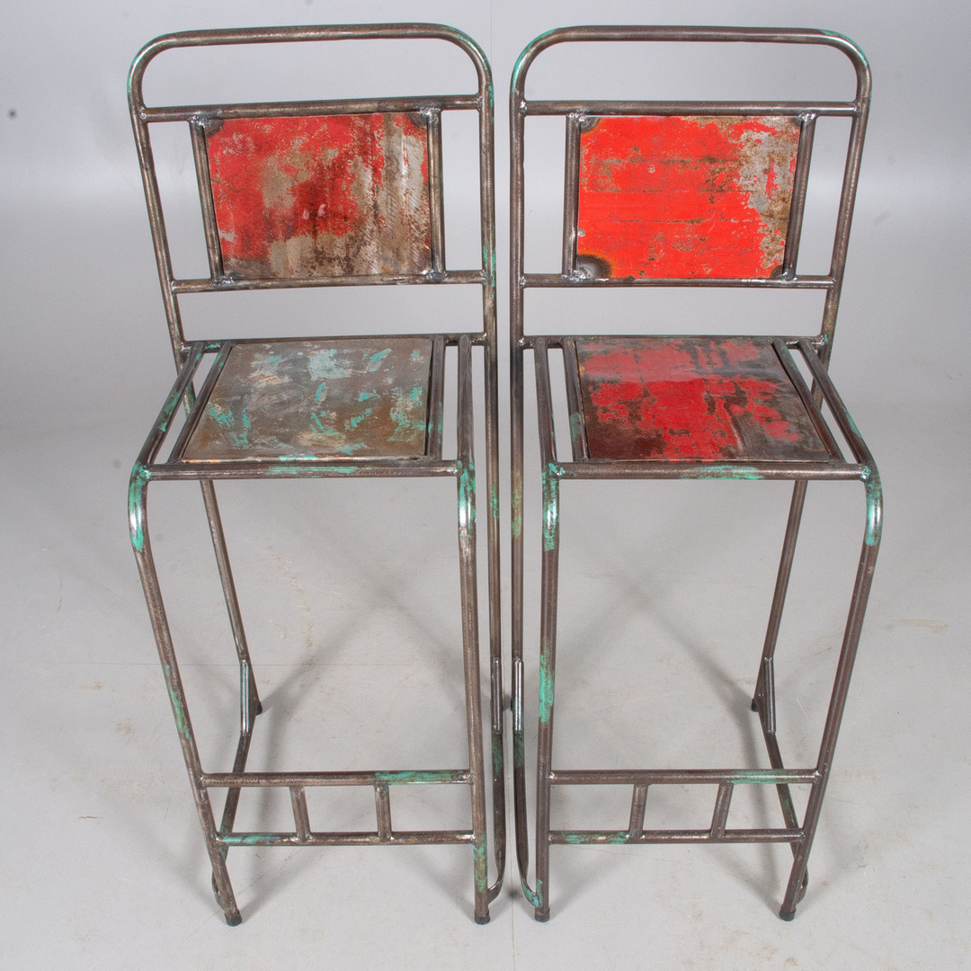 1282313. BARSTOOLS, 1 pair, painted metal/forged.