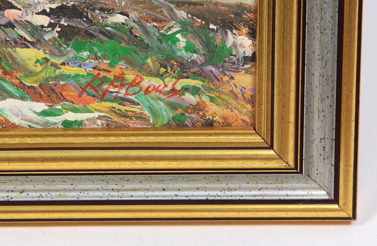 Oil/canvas signed Rabous lower right, portrait format depiction of a summer bouquet of flowers, impasto reproduction, approx. 50 x 60 cm, in a profiled frame, approx. 58x68cm.