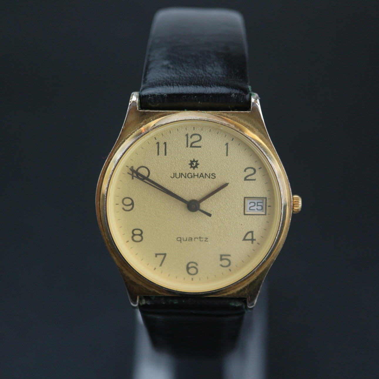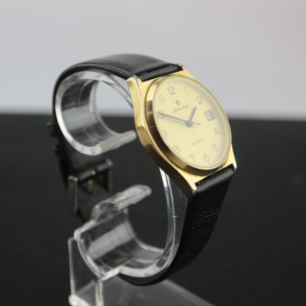 Quartz movement with date display, case diameter: 31 mm, stainless steel, shock + water-resistant.