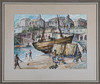 City environment with beach. Image dimensions approx. 44 x 58 cm.