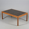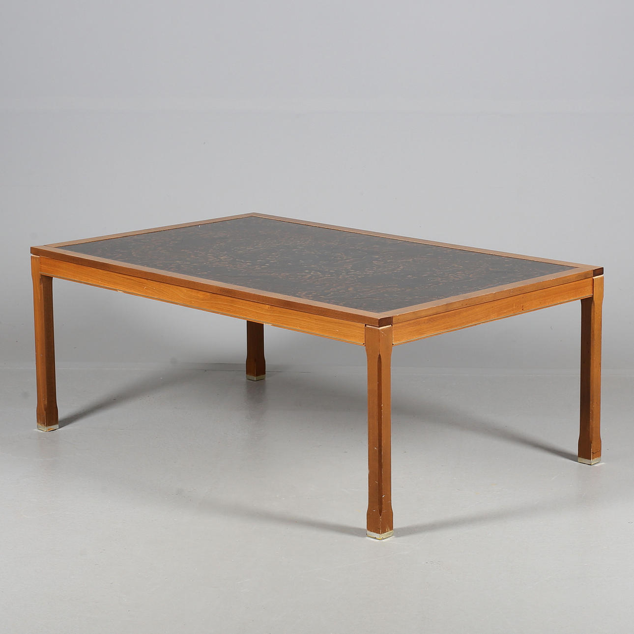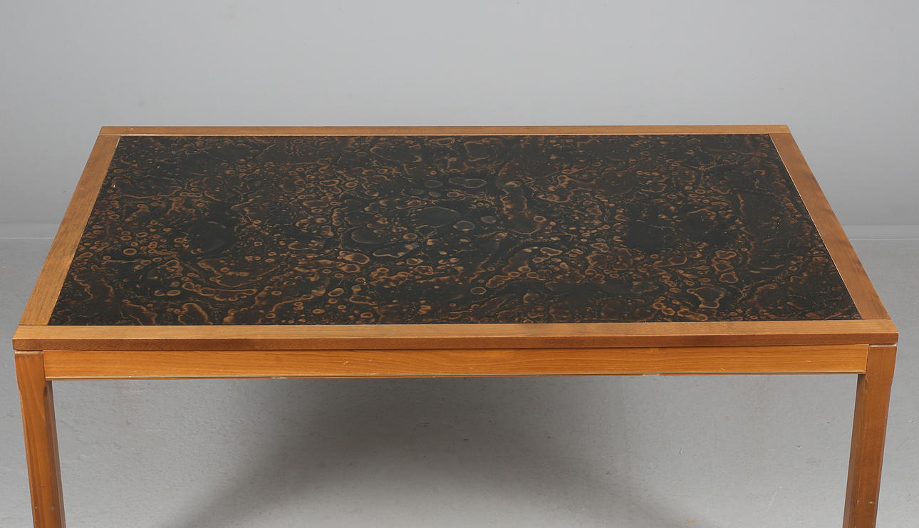 Table top made of composite material, dimensions 135 x 85 cm. Height 53 cm. With brass inlays.