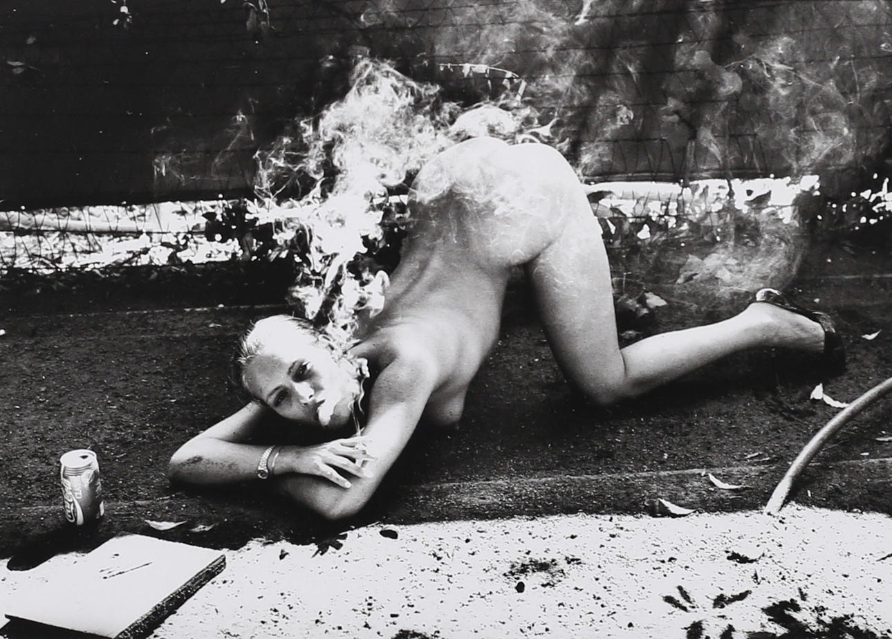 AFTER HELMUT NEWTON. Smoking Nude, offset, unsigned.