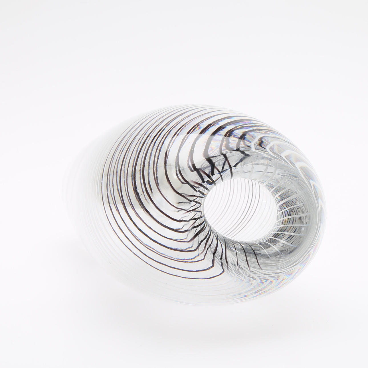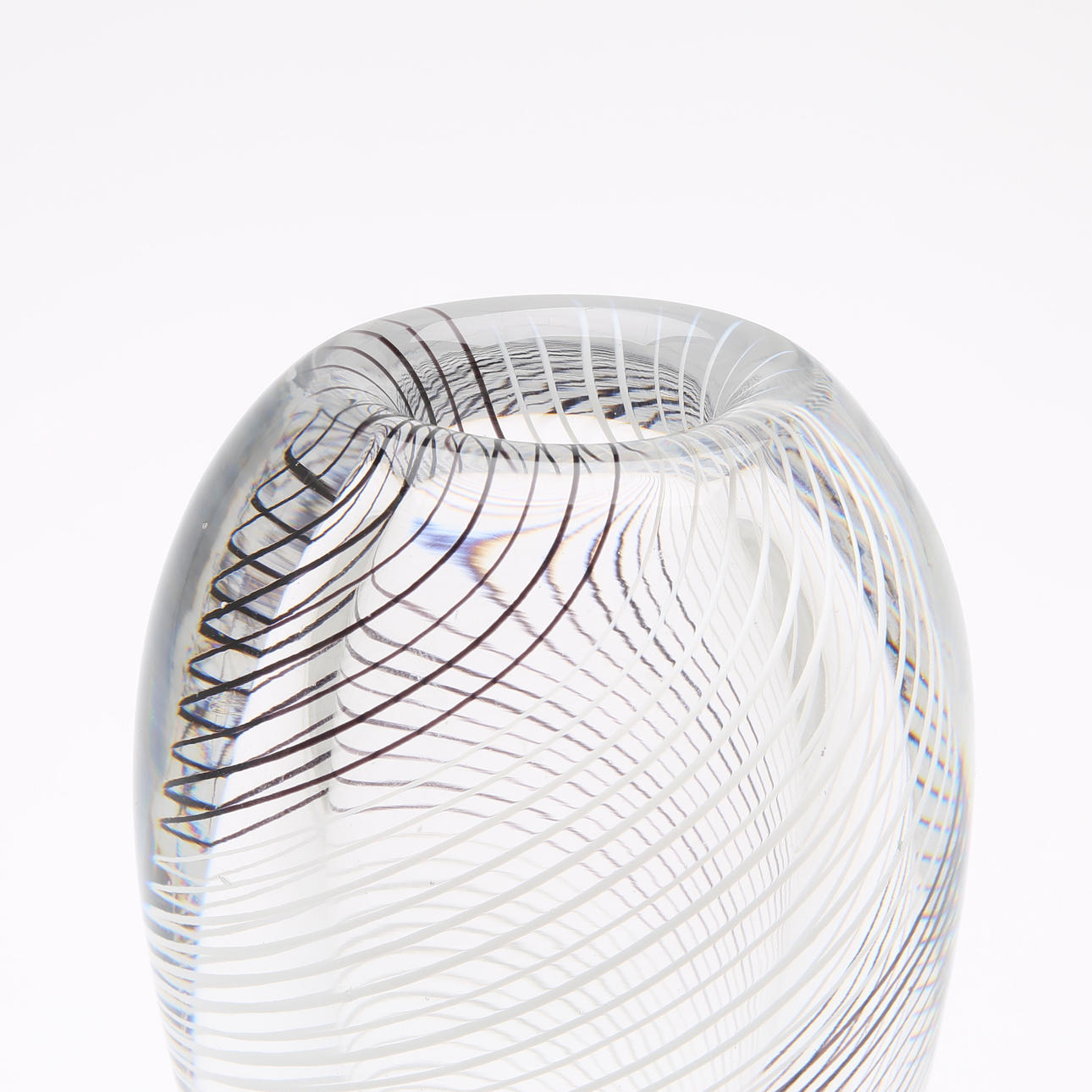 Decor of black and white stripes. Signed Kosta LH 1261. Height 23 cm.