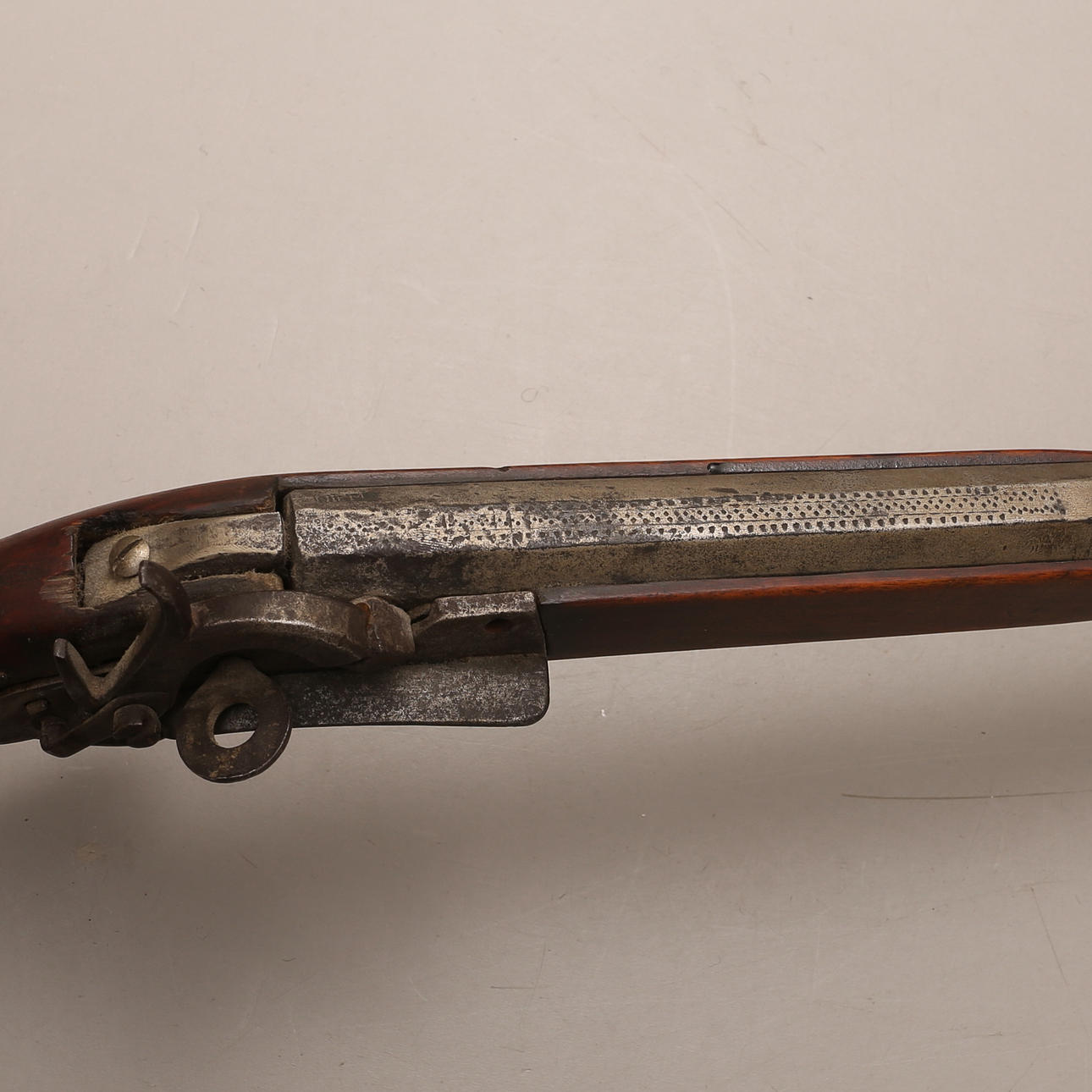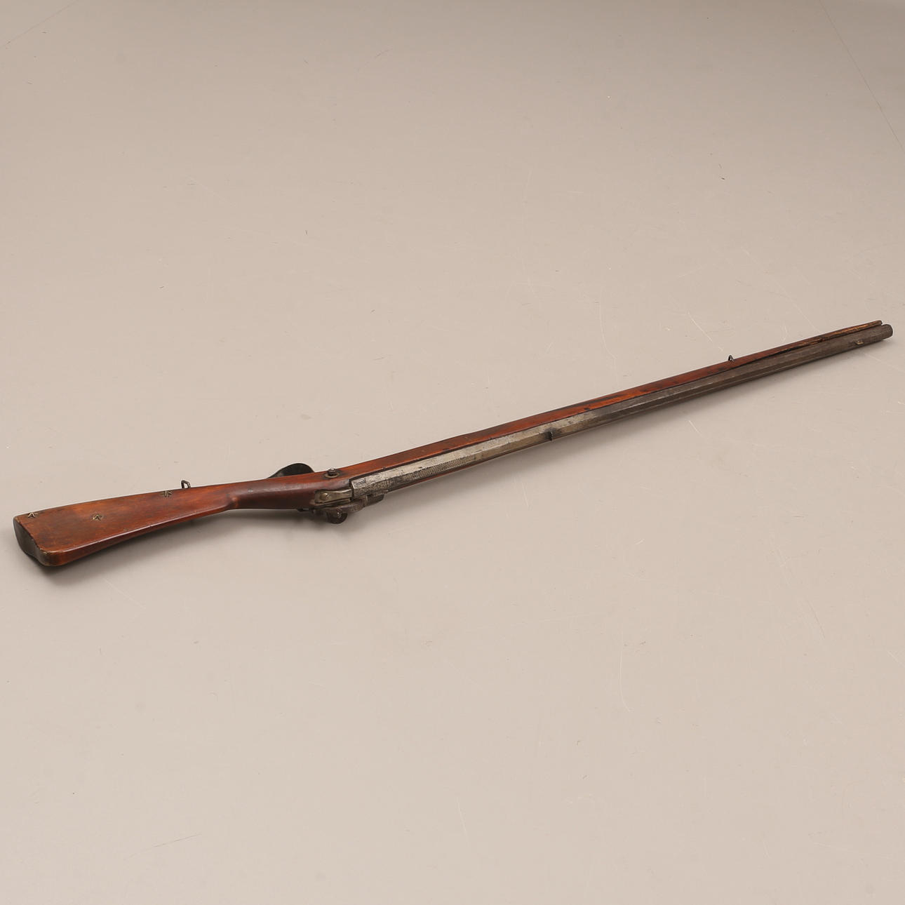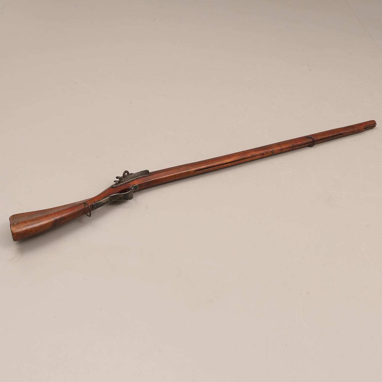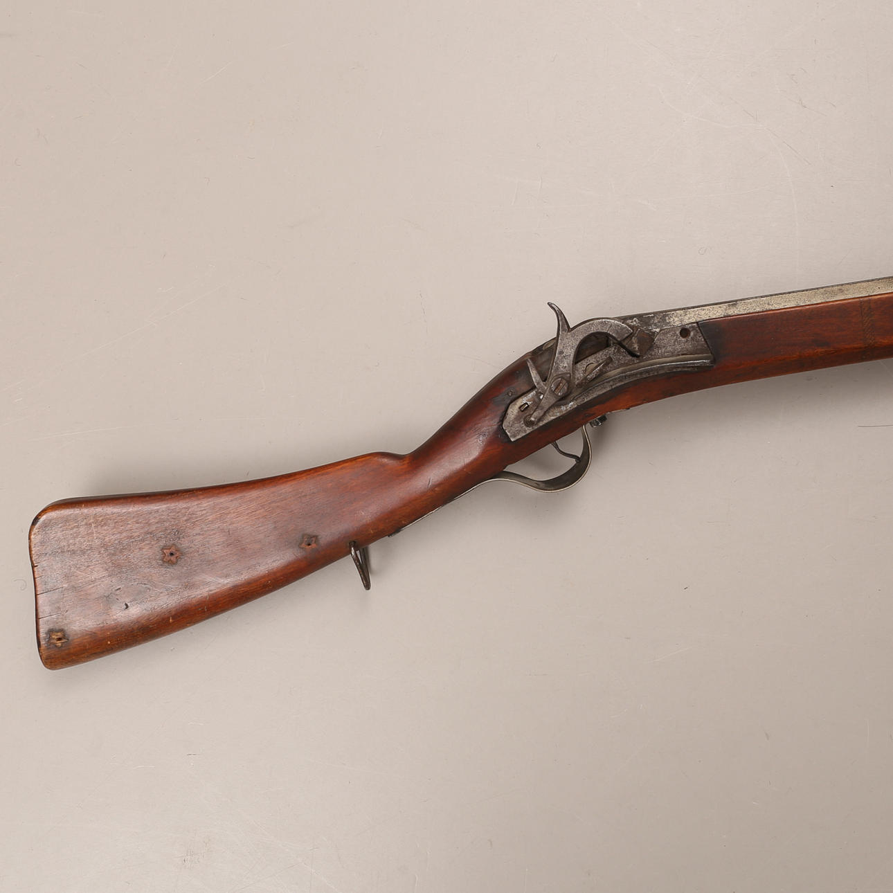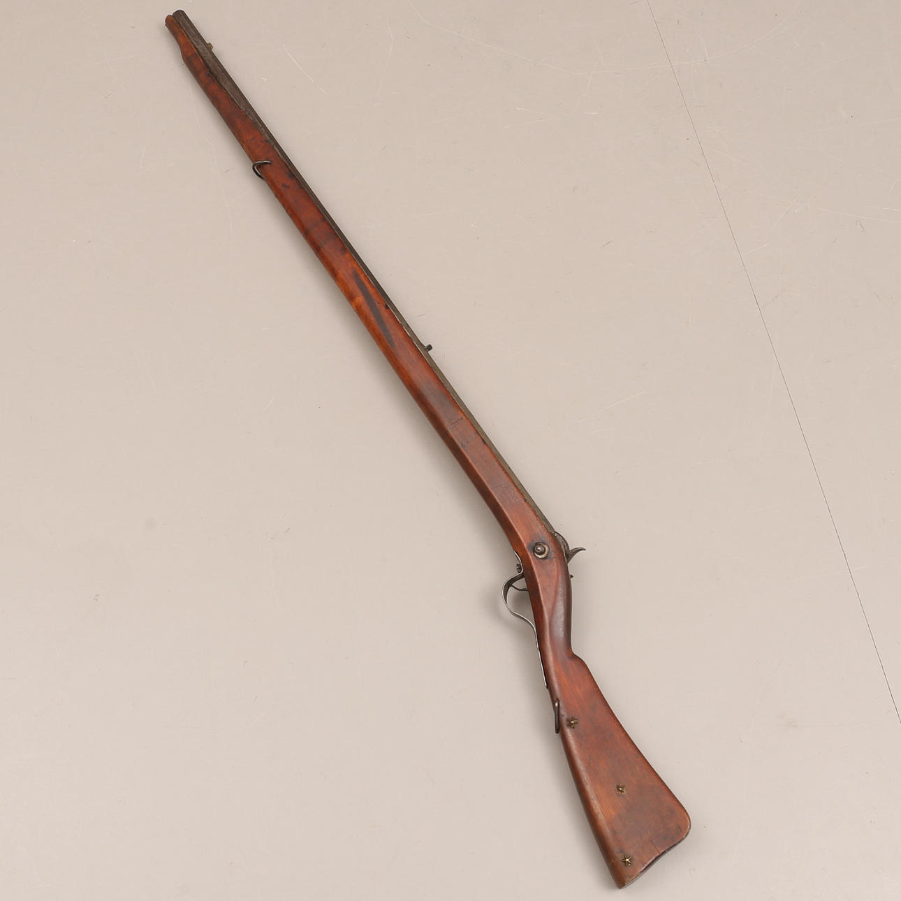 Northern plumb bob from the middle of the 19th century, fluted barrel, snap lock. Charging stick in metal.