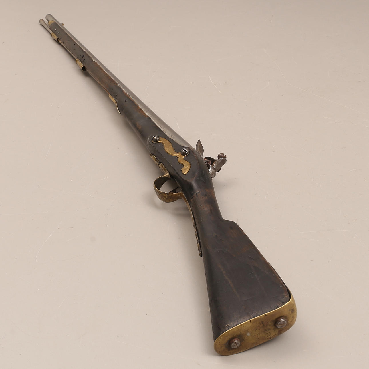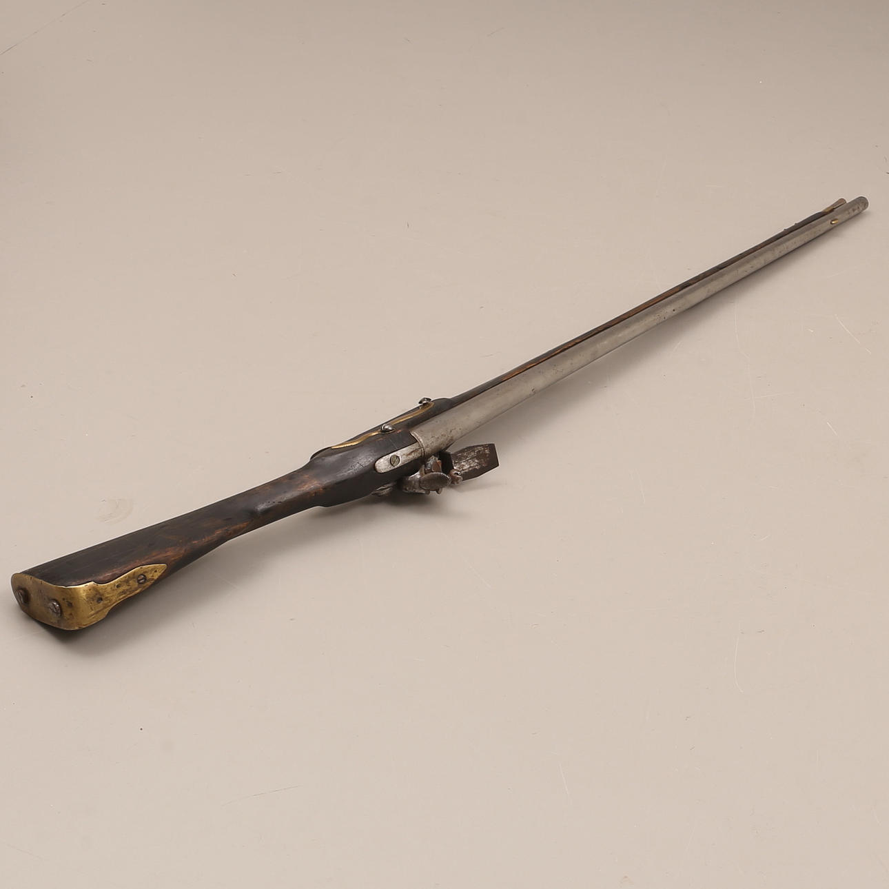 Caliber approx. 20 mm. Swedish flintlock musket, almost identical to m/1731 but composed of contemporary parts. Blackened piston, working lock.
