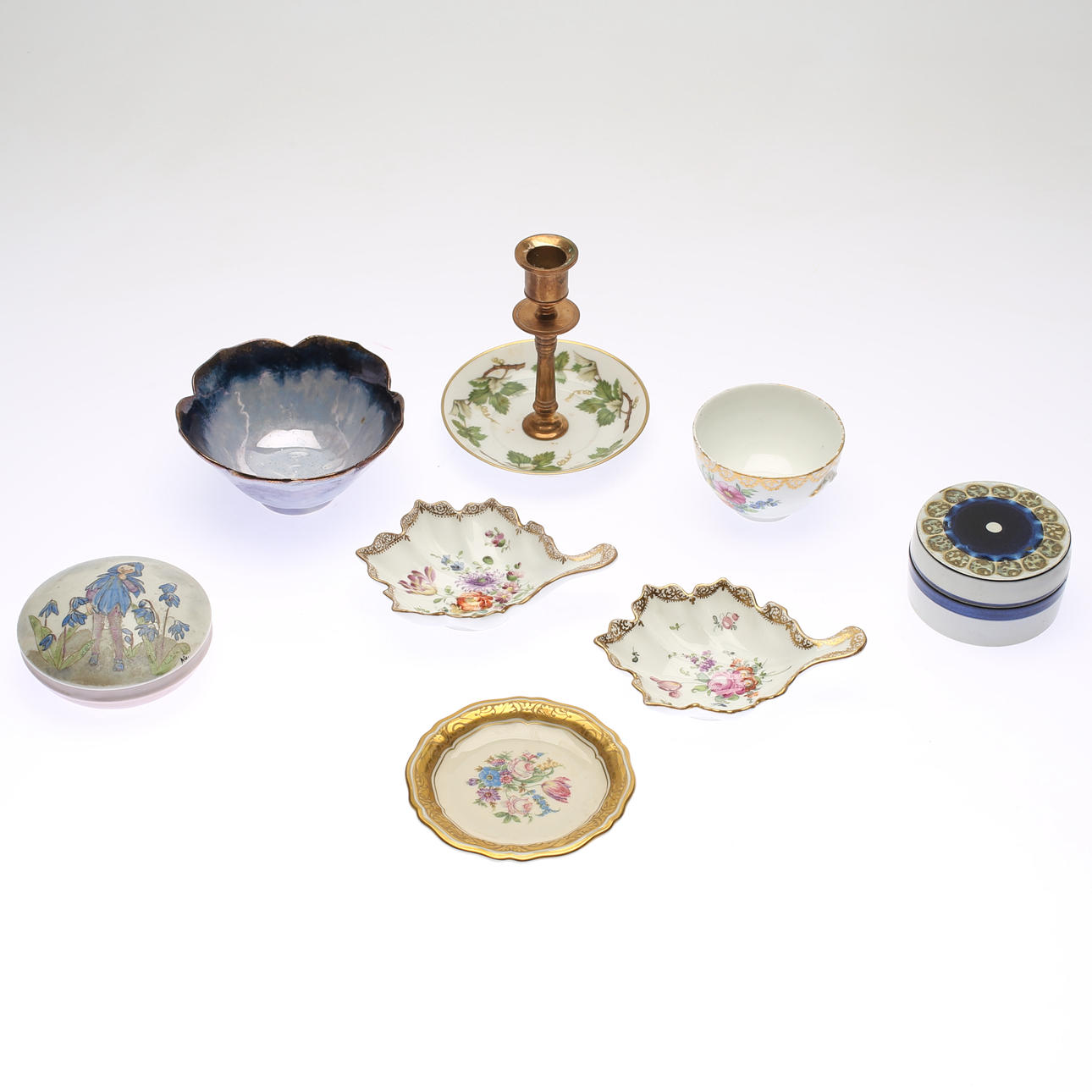 Among other things, boxes, bowls and candlesticks. Height approx. 1.5-12 cm.
