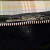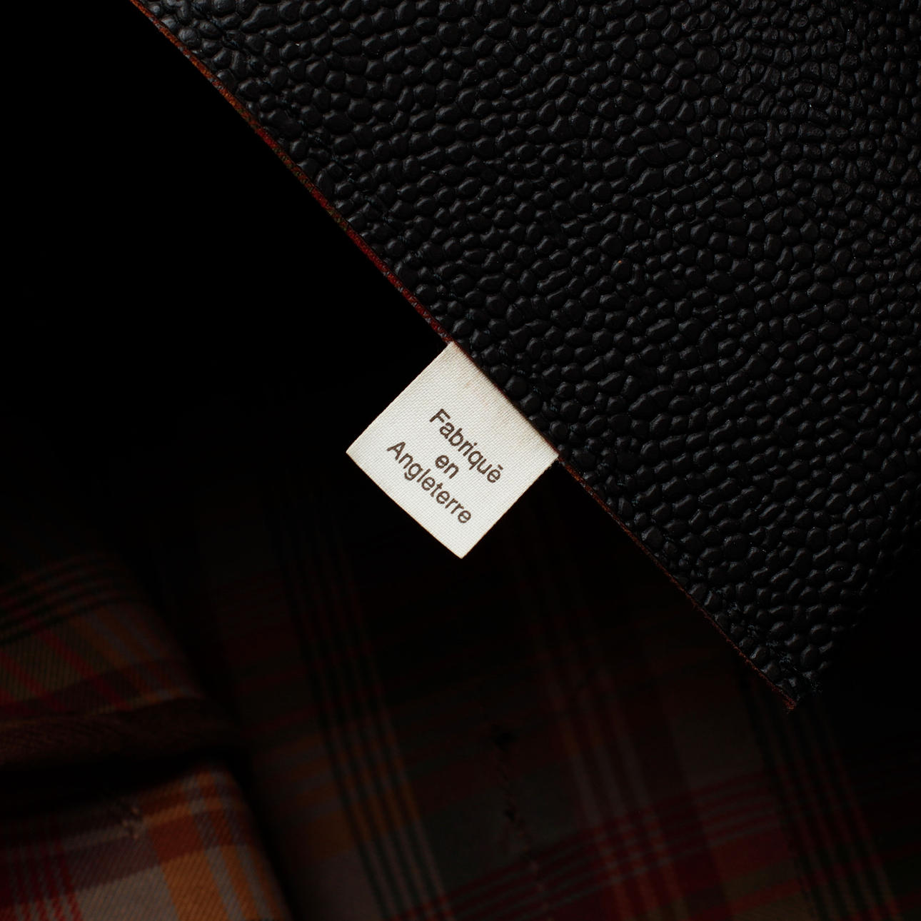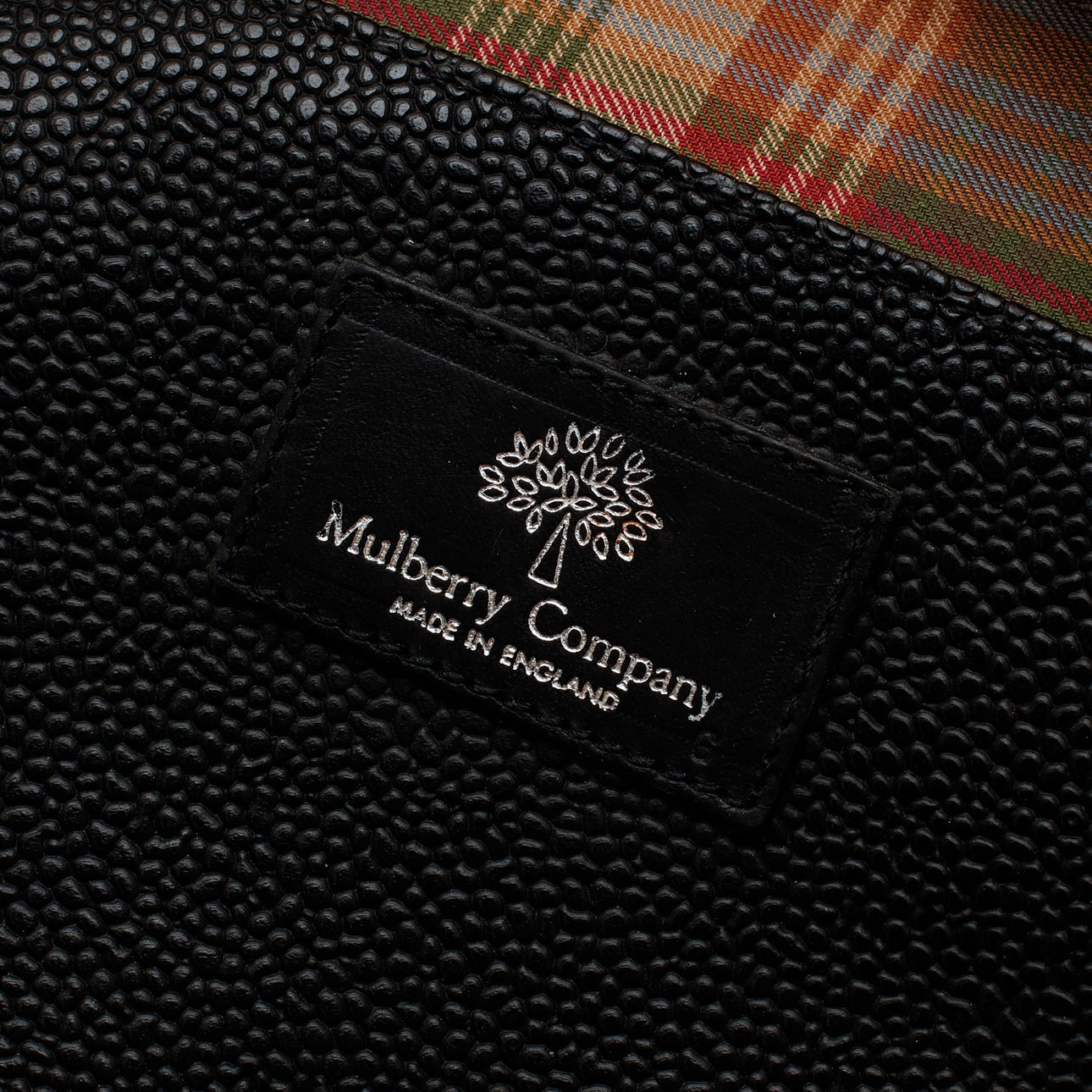 Black scotch grain with details in black leather. Checkered lining. A pocket inside. Marked "Mulberry Company MADE IN ENGLAND" on leather label and "Fabriqué en Angleterre" on label. Width approx. 54 cm, depth approx. 21, height approx. 30 cm.