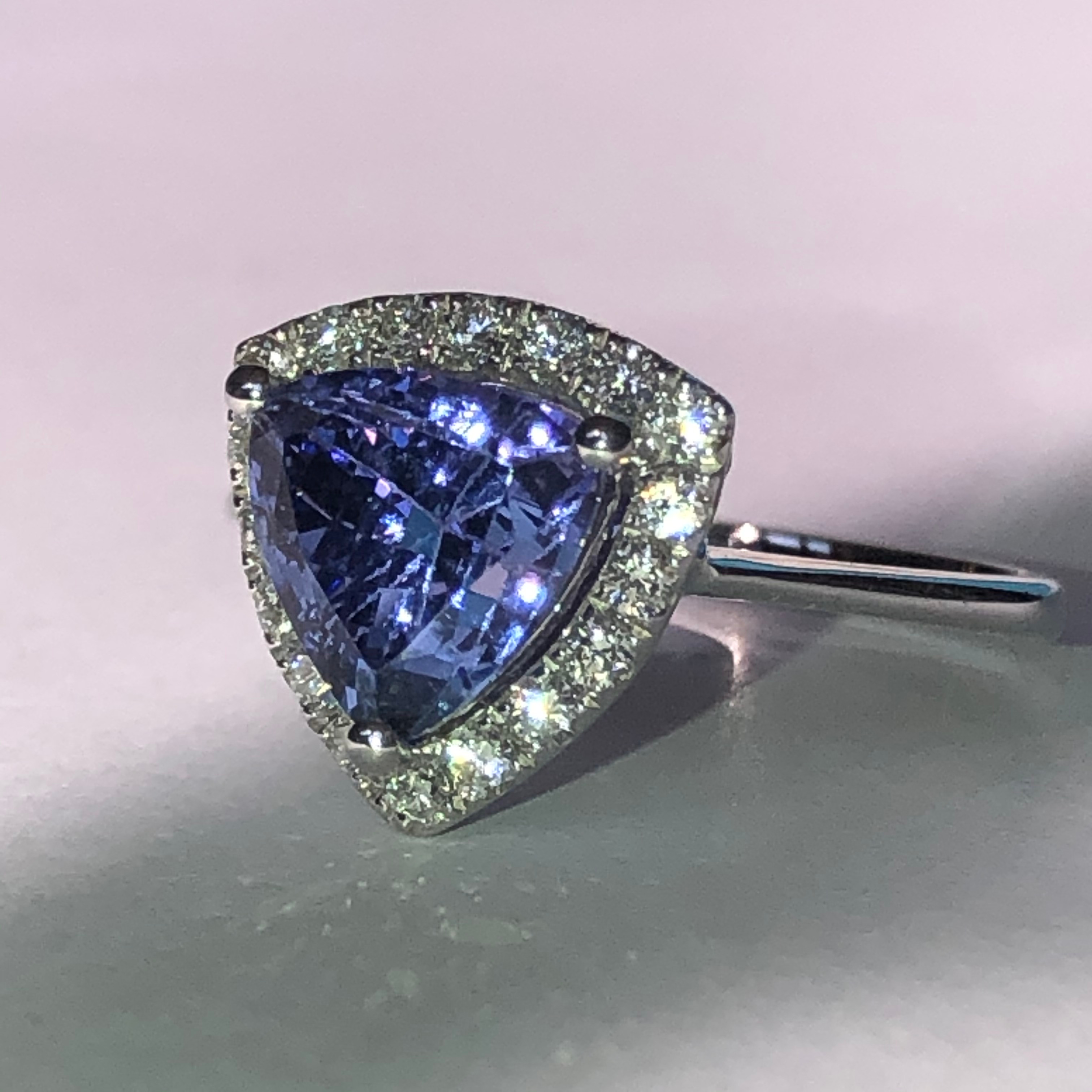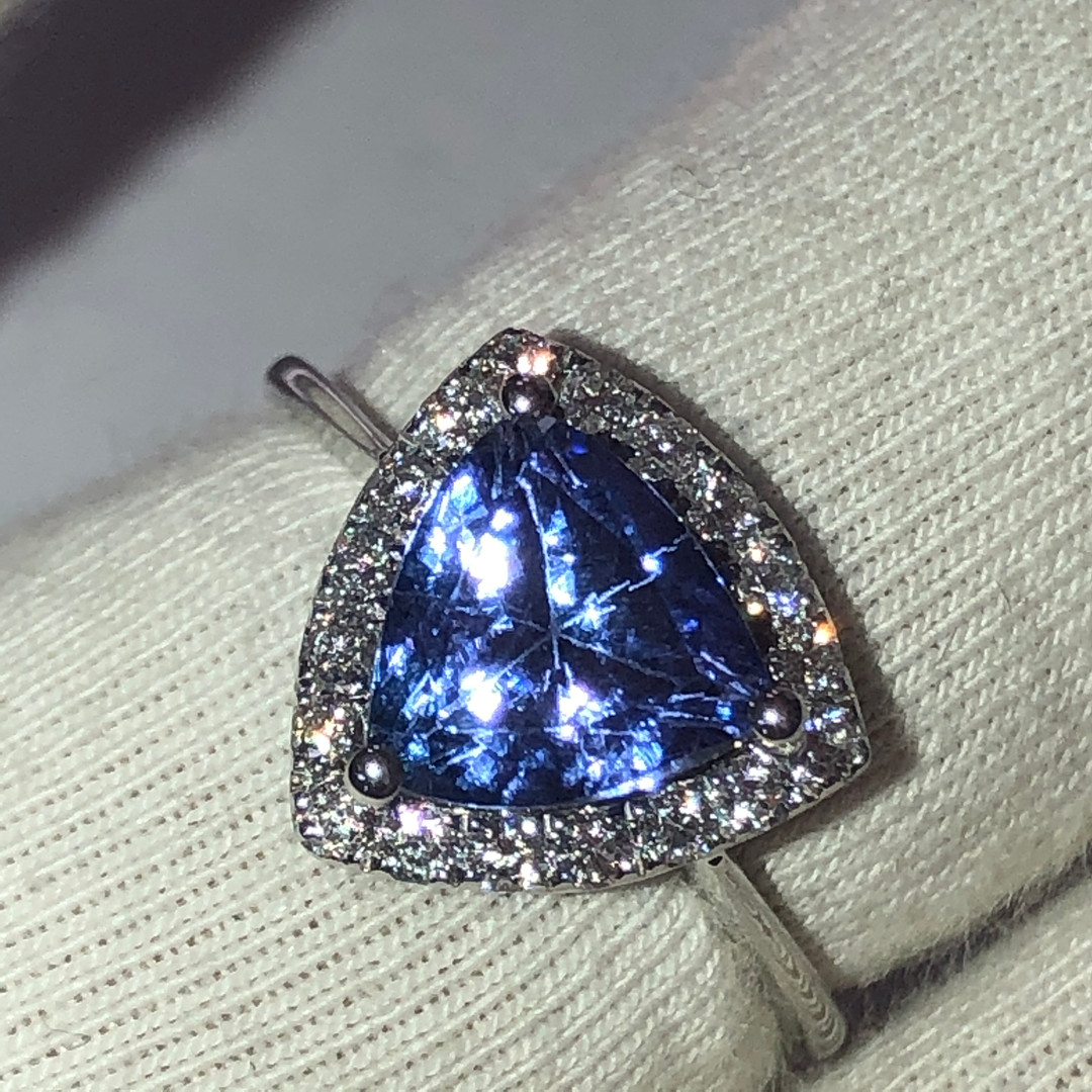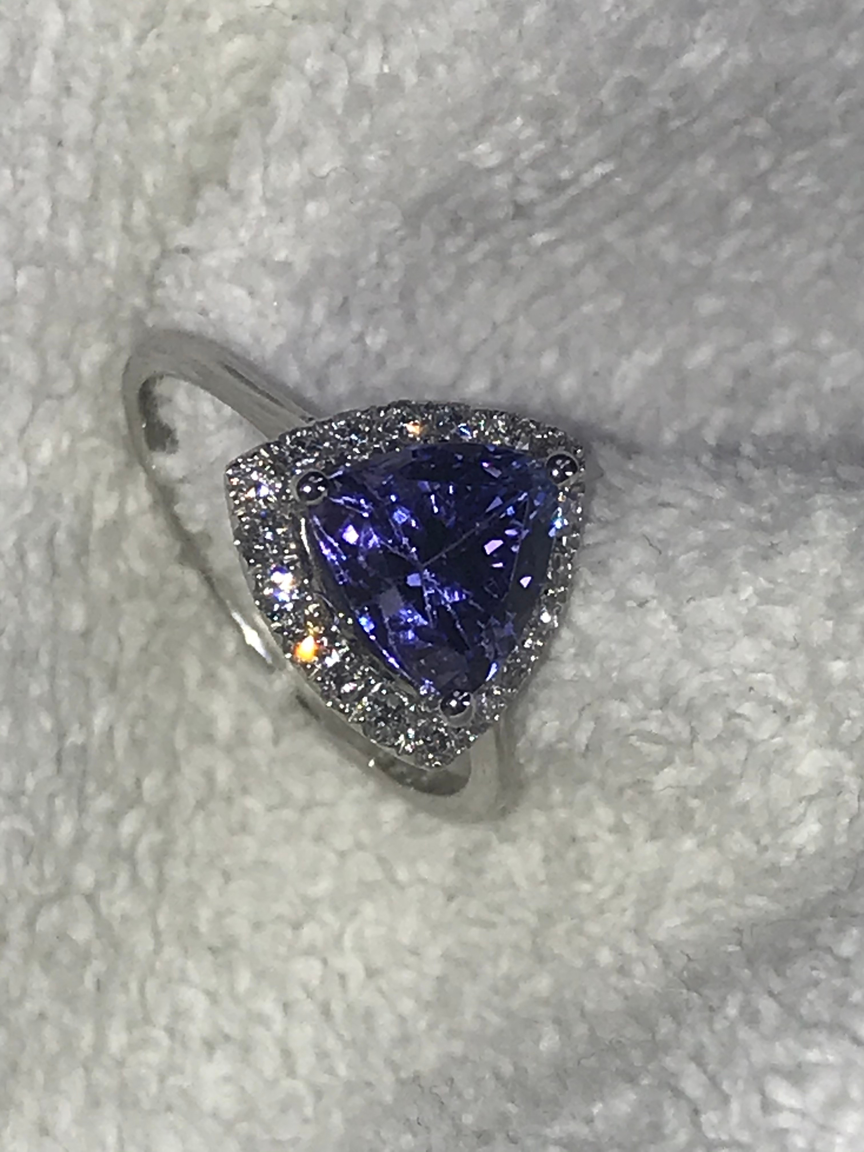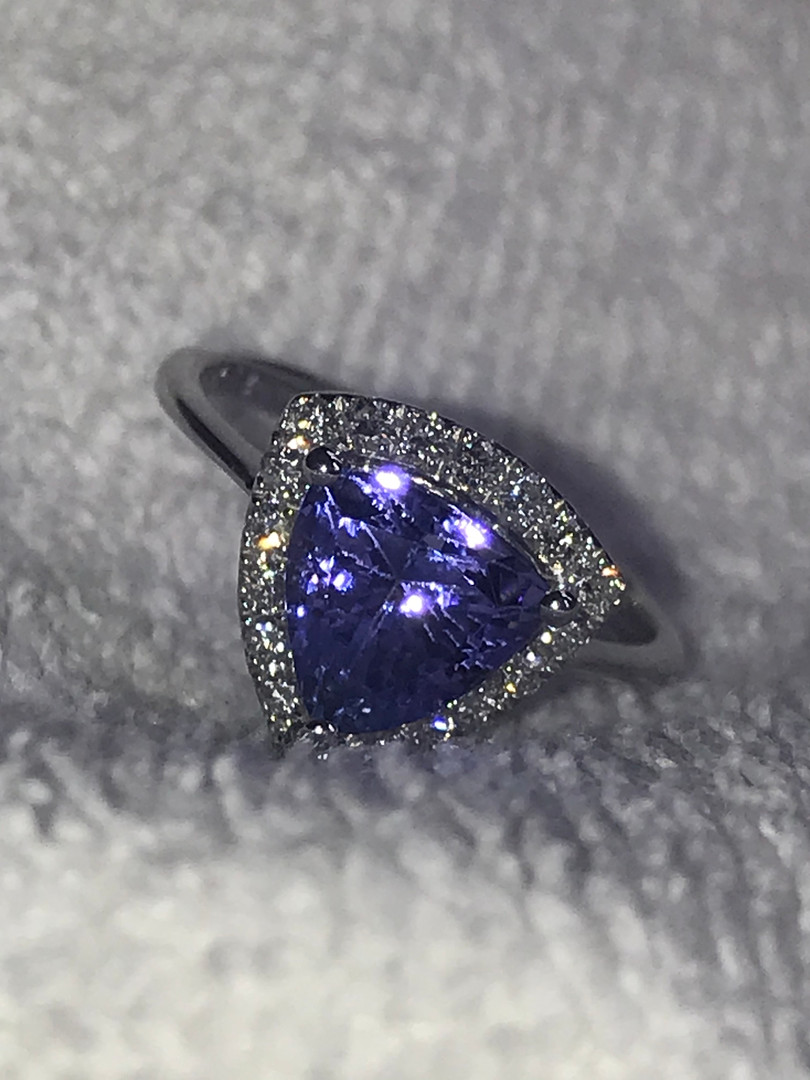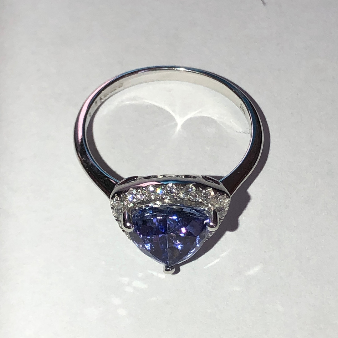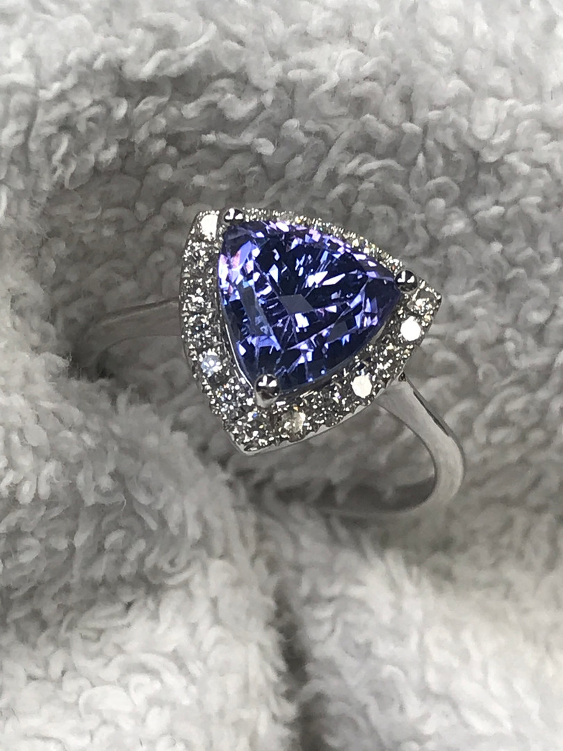 1326679. TRILLION CUT TANZANITE & DIAMOND RING.