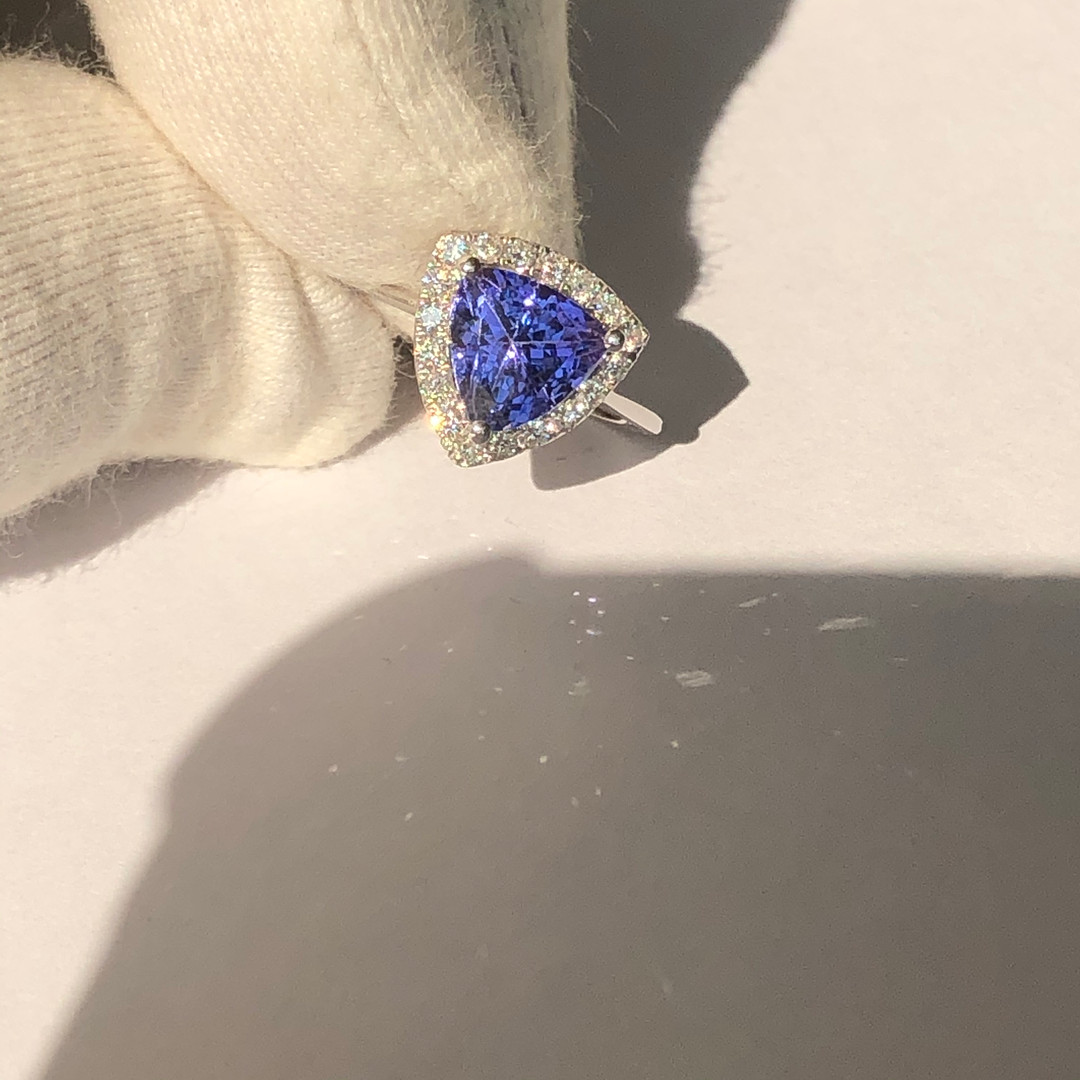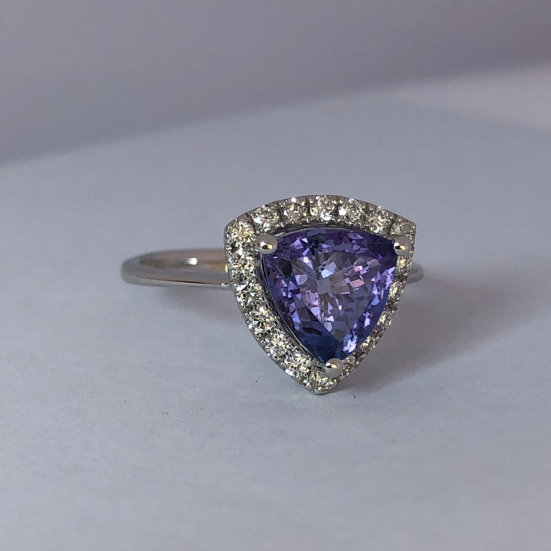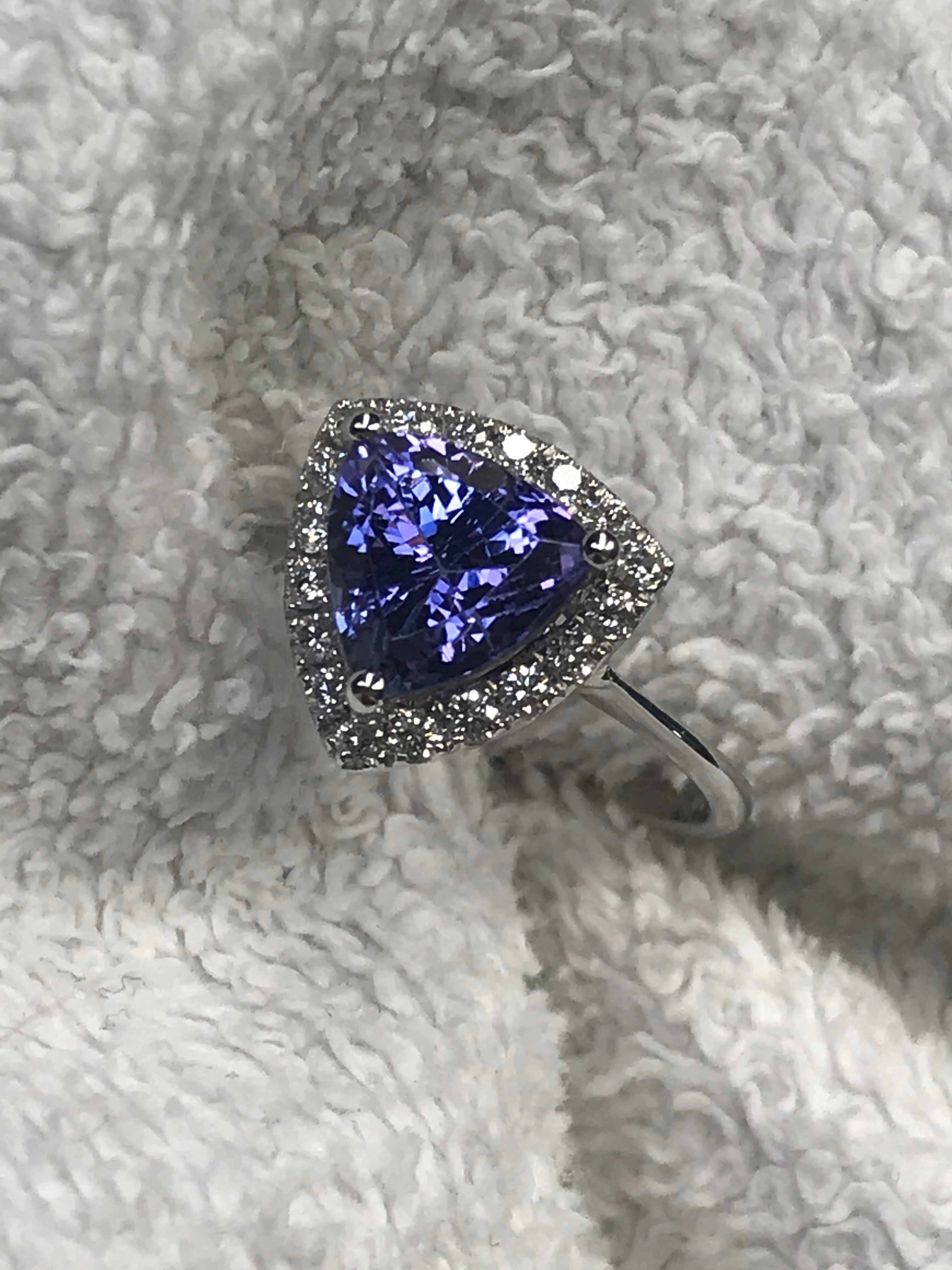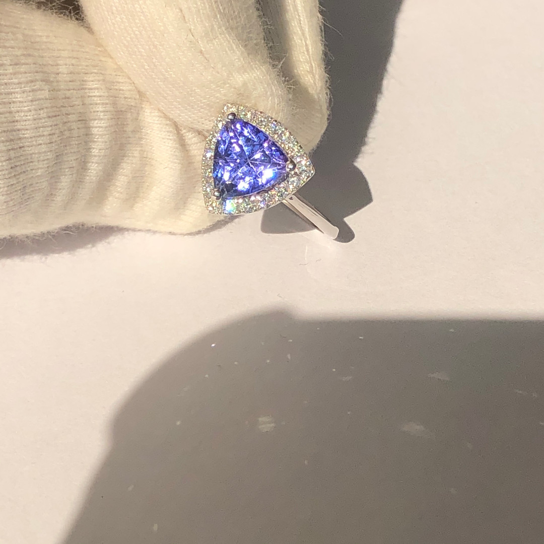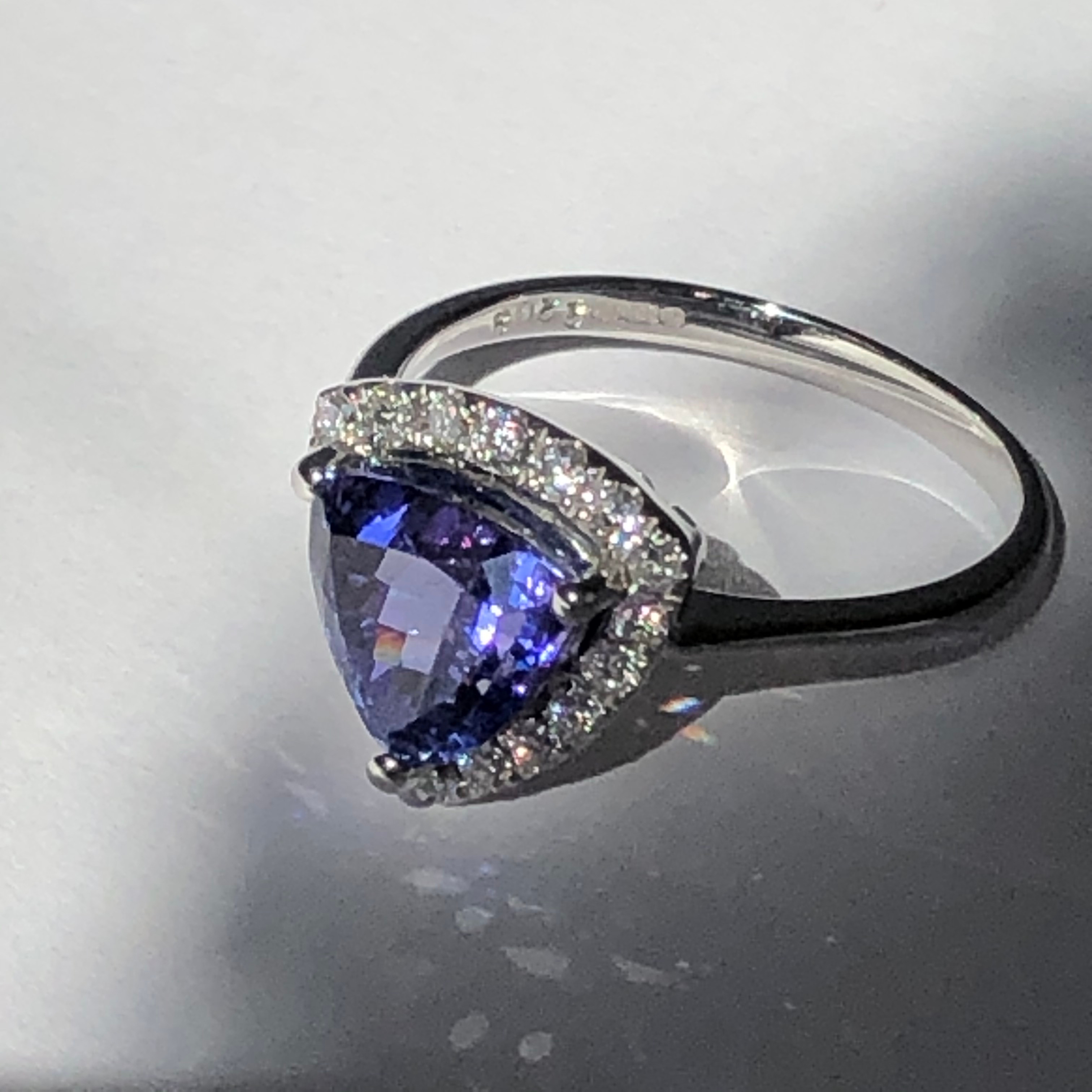 1326679. TRILLION CUT TANZANITE & DIAMOND RING.