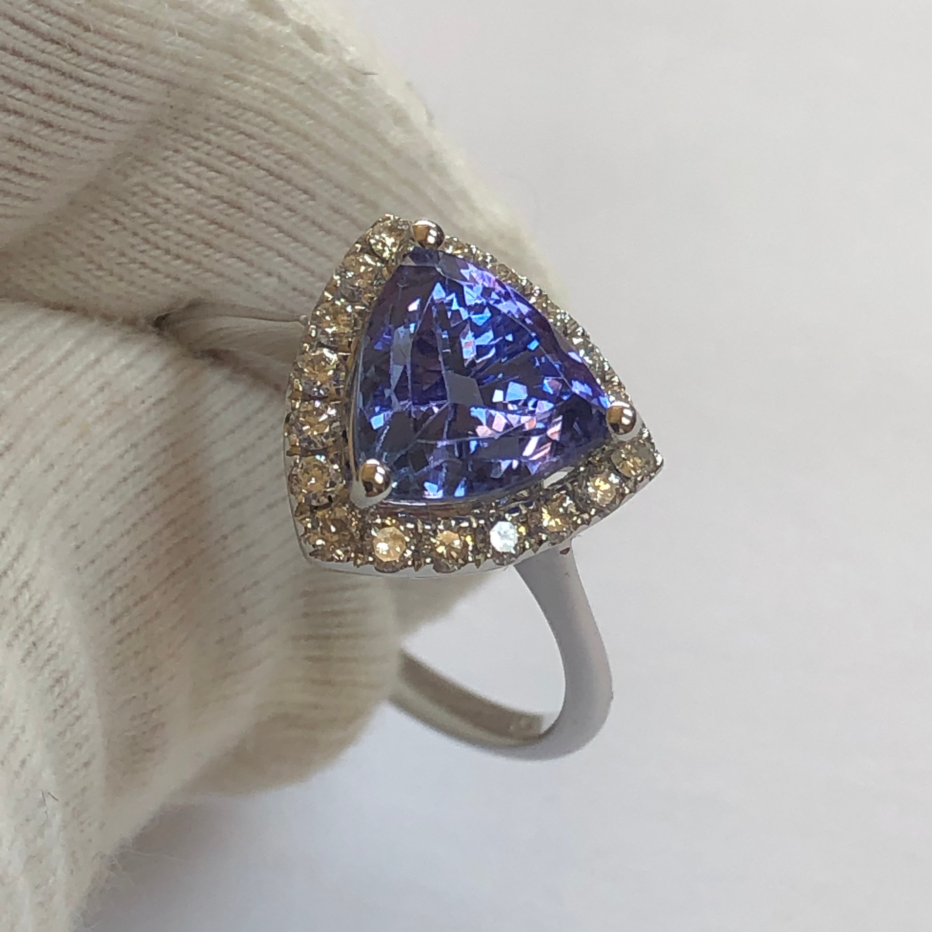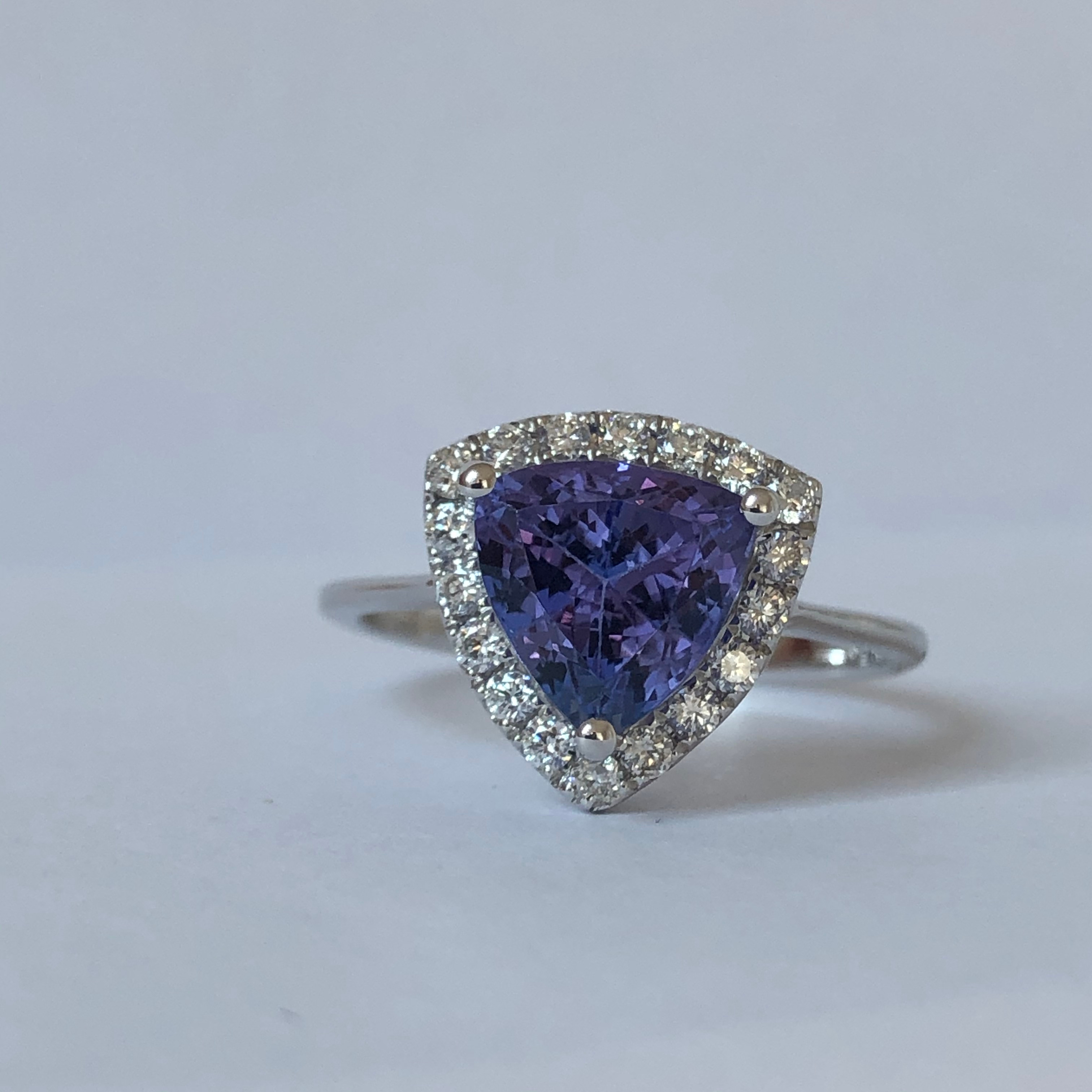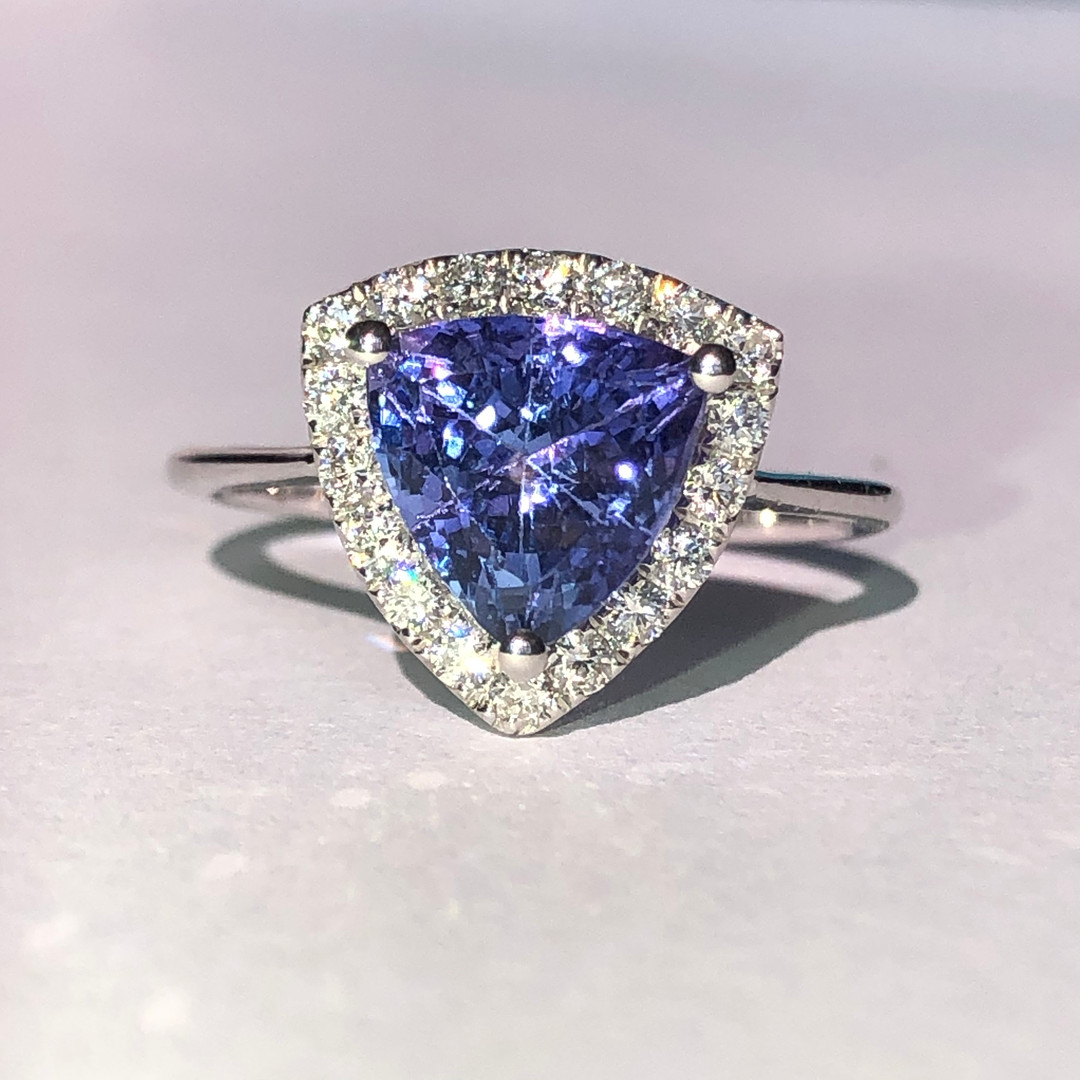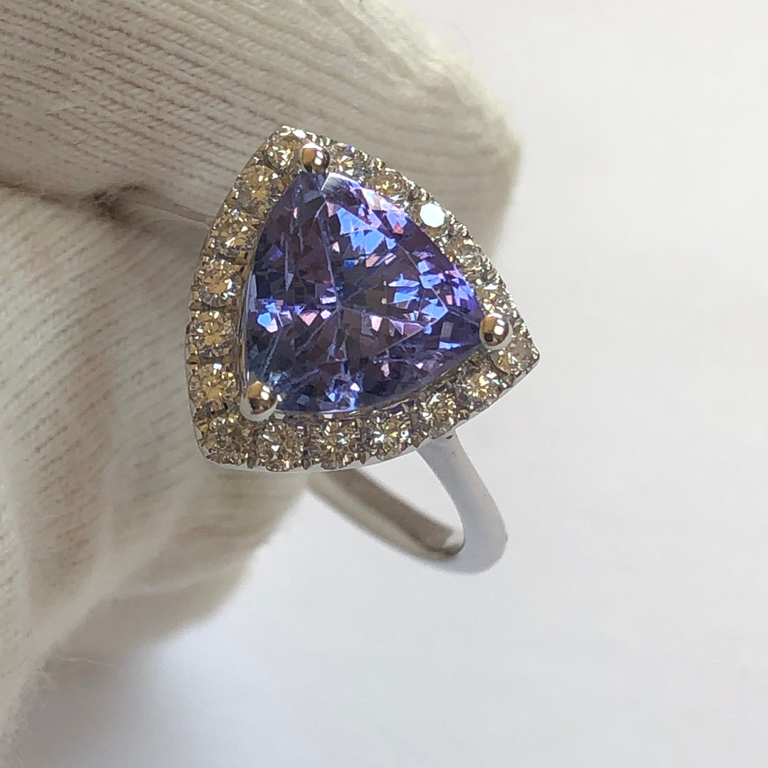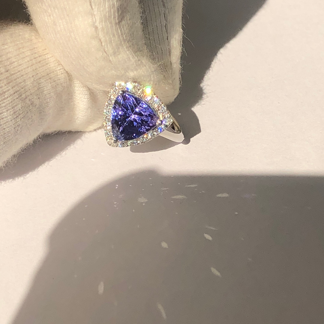1326679. TRILLION CUT TANZANITE & DIAMOND RING.