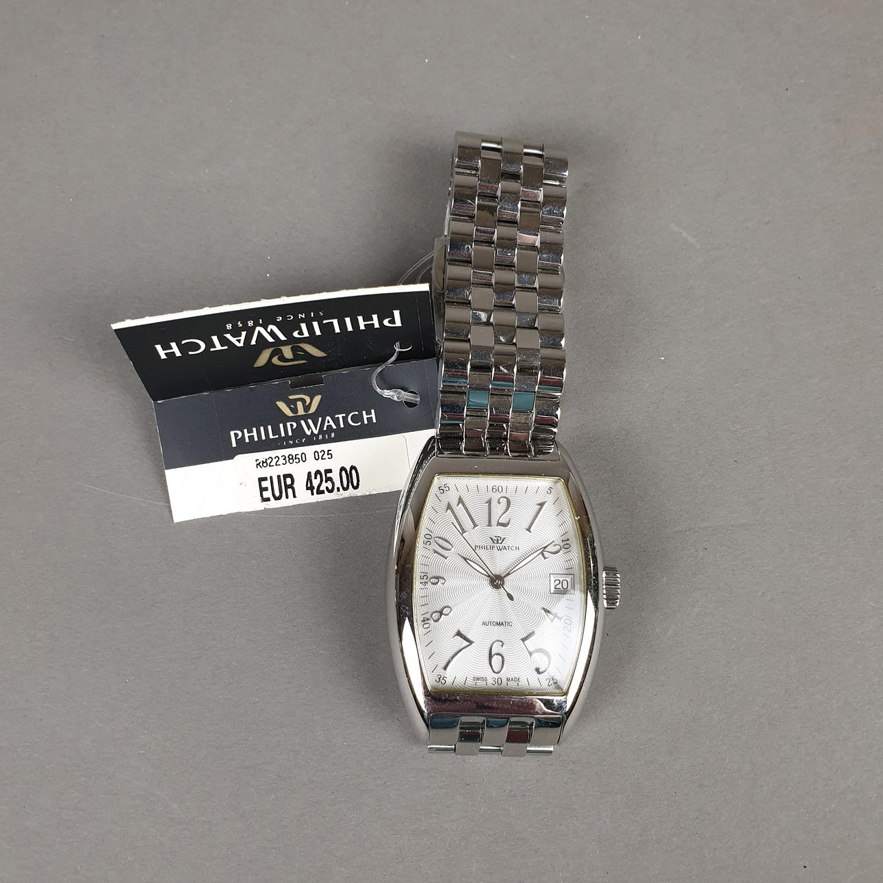 PHILIP WATCH - stainless steel, automatic date display, size: approx. 50 x 35 mm, weight approx. 163 grams. Original label, new price €425.