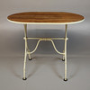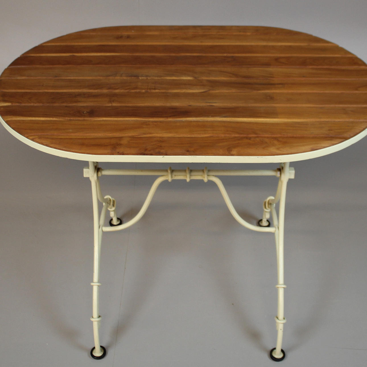 1329088. TABLE metal base with wooden slats.