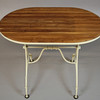 TABLE metal base with wooden slats.