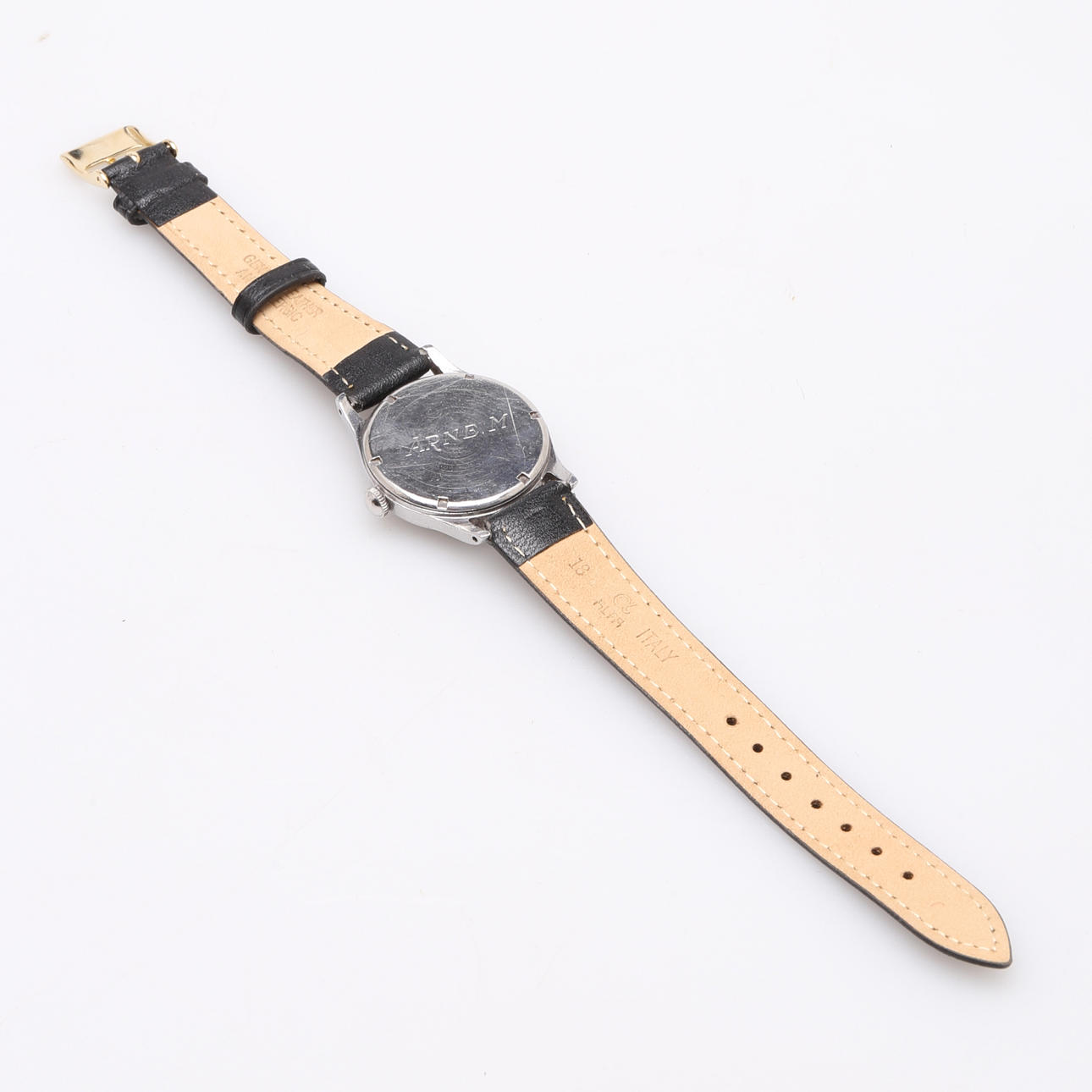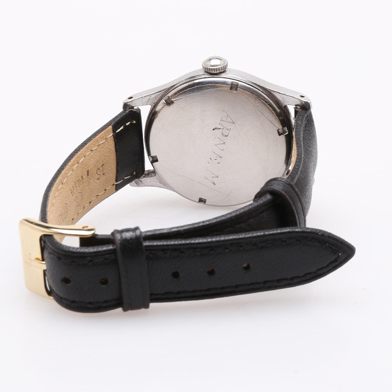 Enicar Watch Company Steel case, manual movement, 17 jewels Leather strap Case diameter 33 mm Weight 36.2 grams.