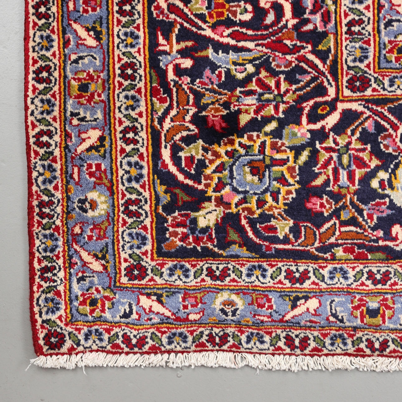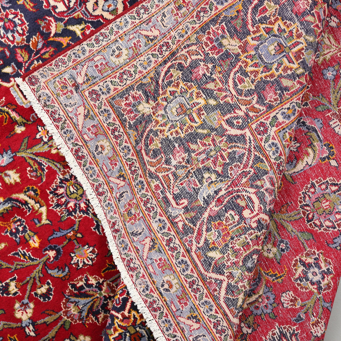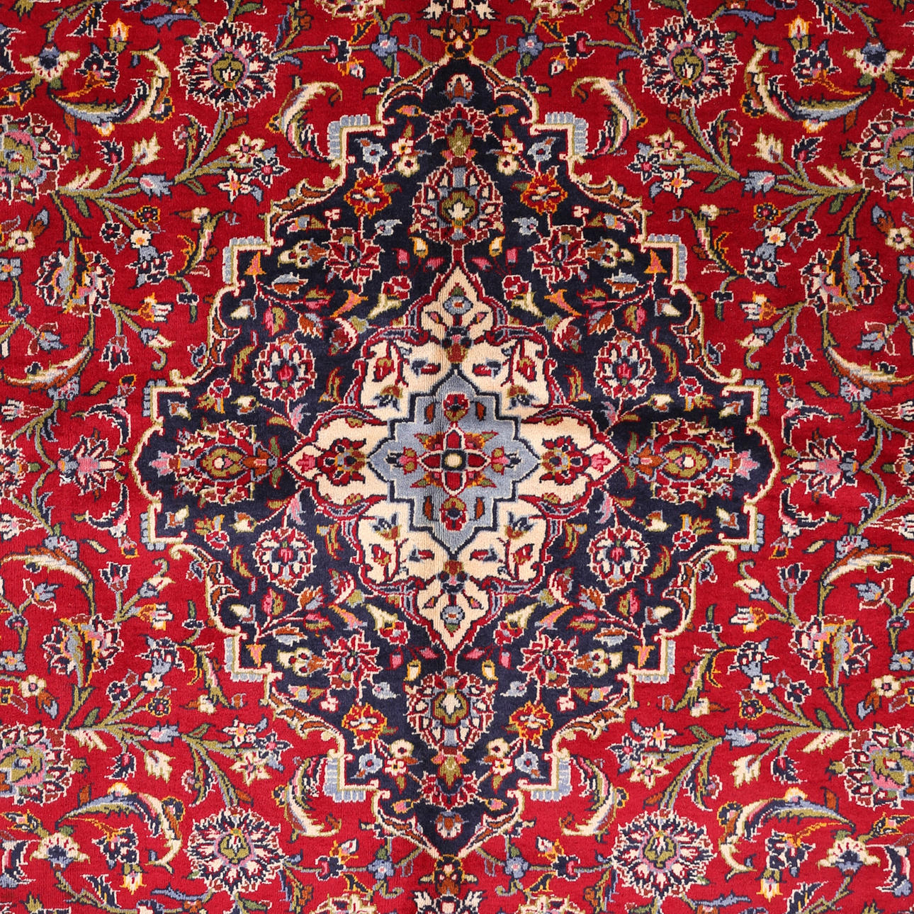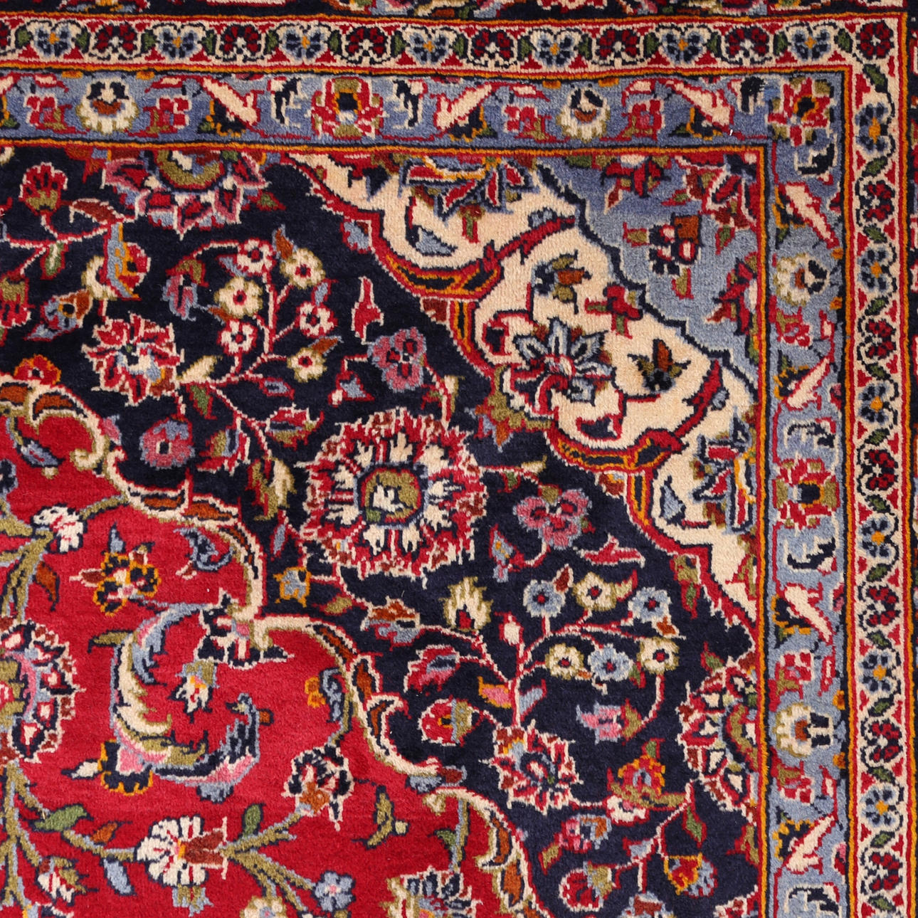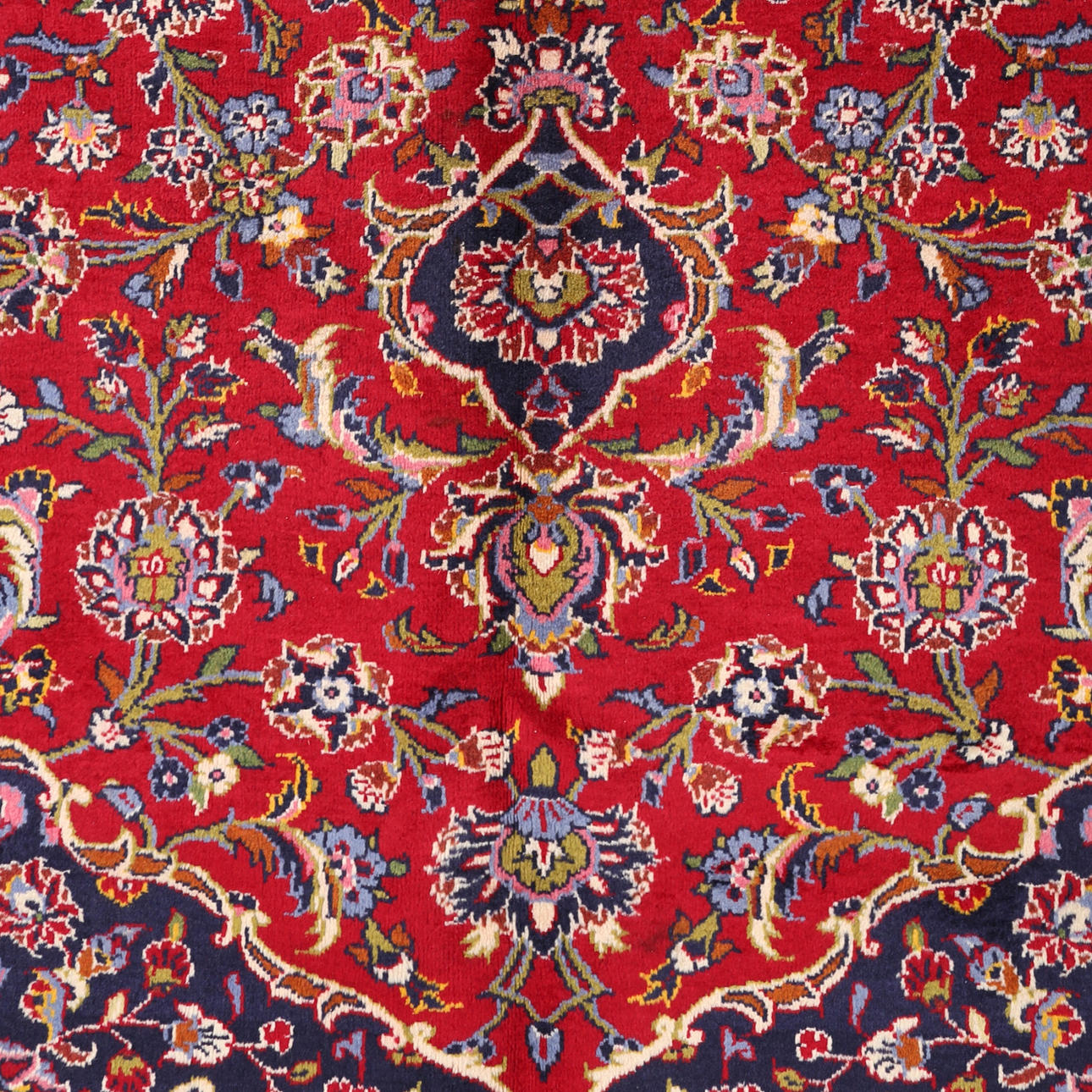 Hand-knotted Persian rug in wool on cotton warp, Keshan.