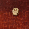 Brown embossed leather with fittings in brass-colored metal. Three larger compartments. One zipped inner pocket. Detachable shoulder strap. Marked on label "Etienne Aigner". Logo on the bag. Width 34 cm, depth approx. 4 cm, height approx. 28 cm.