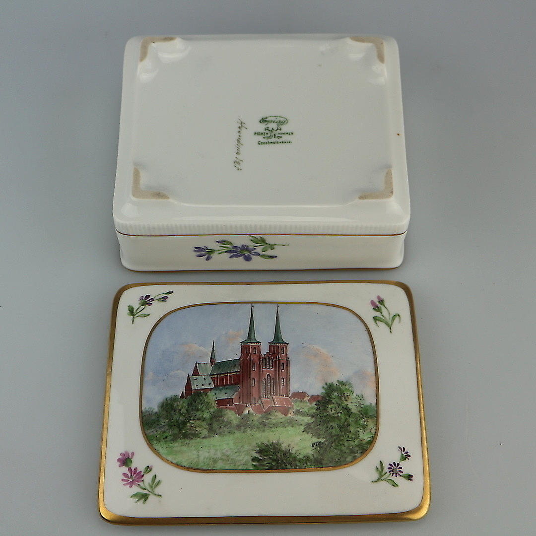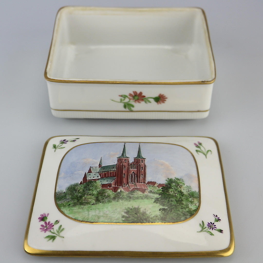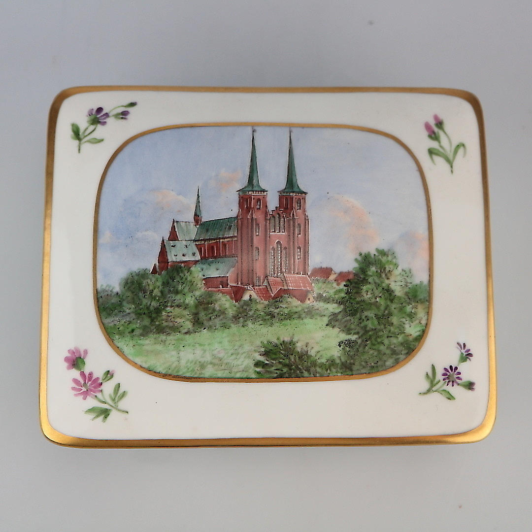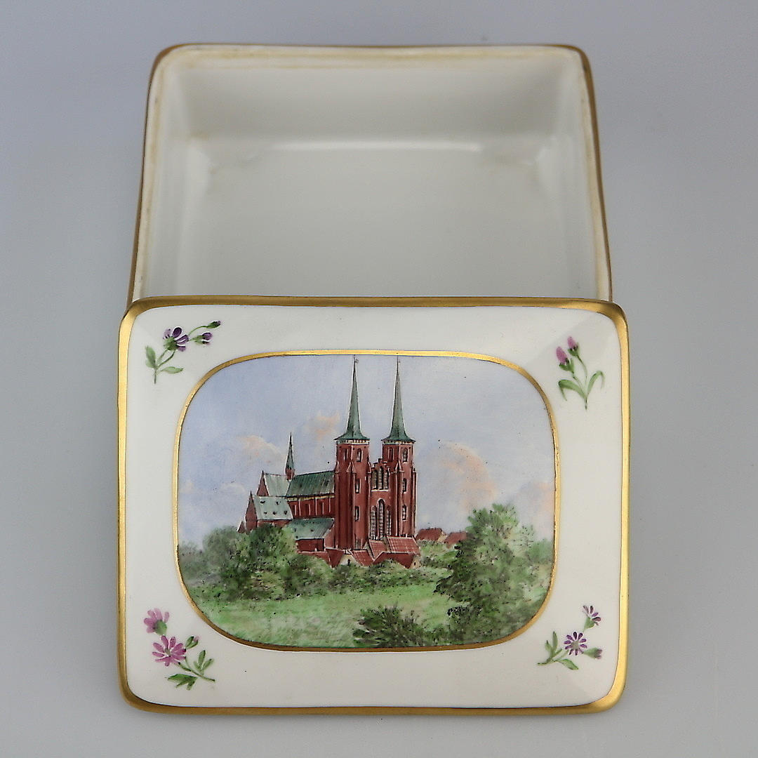 Box from the porcelain manufacturer Epiag Pirkenhammer from Czechoslovakia, early 20th century, with gold rim, dimensions: 14 cm width, height 5 cm.