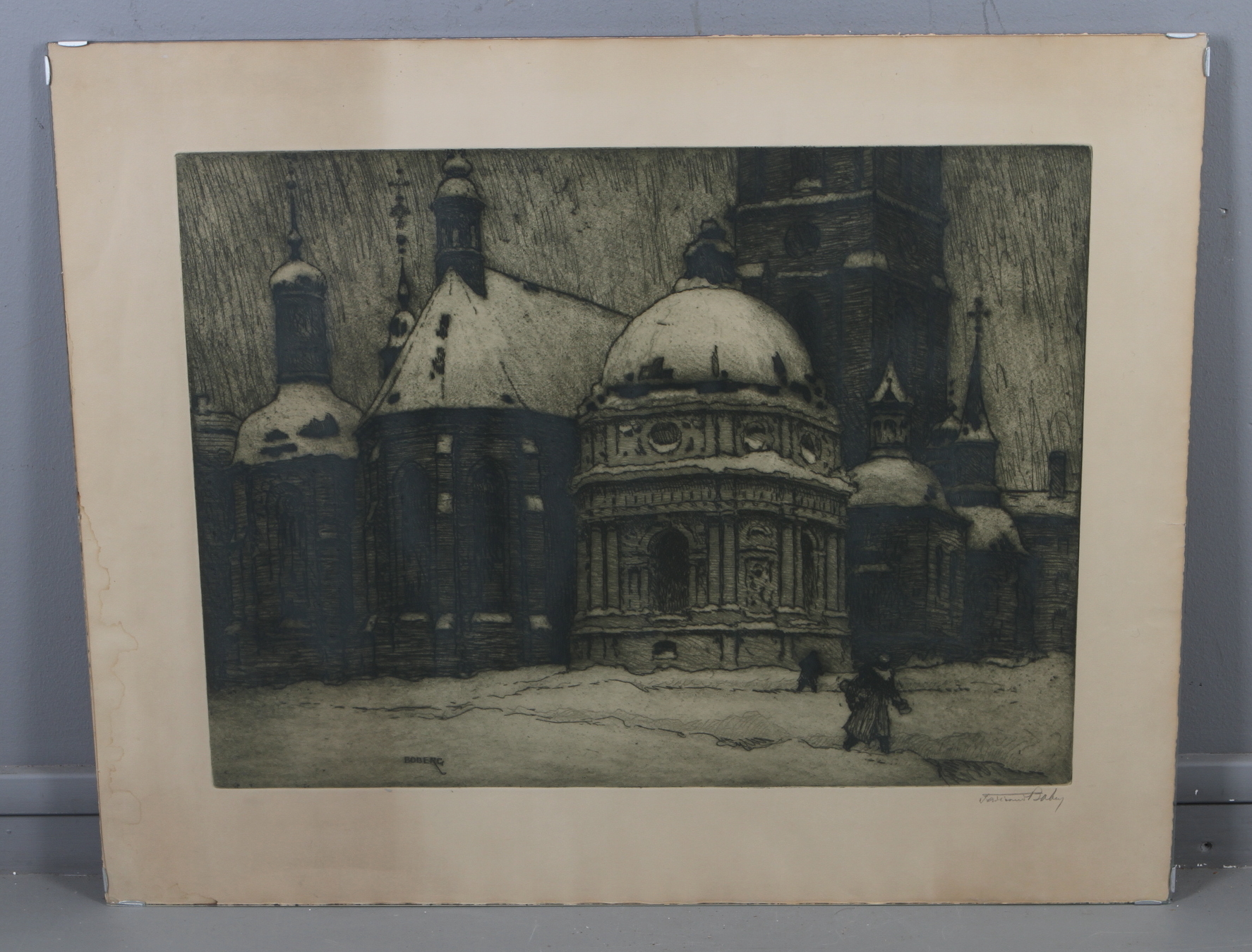 133981. FERDINAND BOBERG. Riddarholm Church, etching, signed.