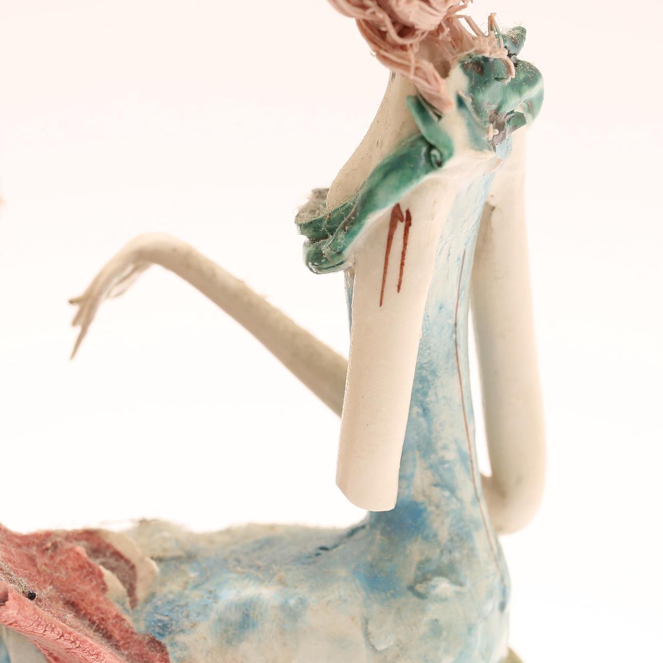 Normal wear and tear, damage to arm, mended neck.