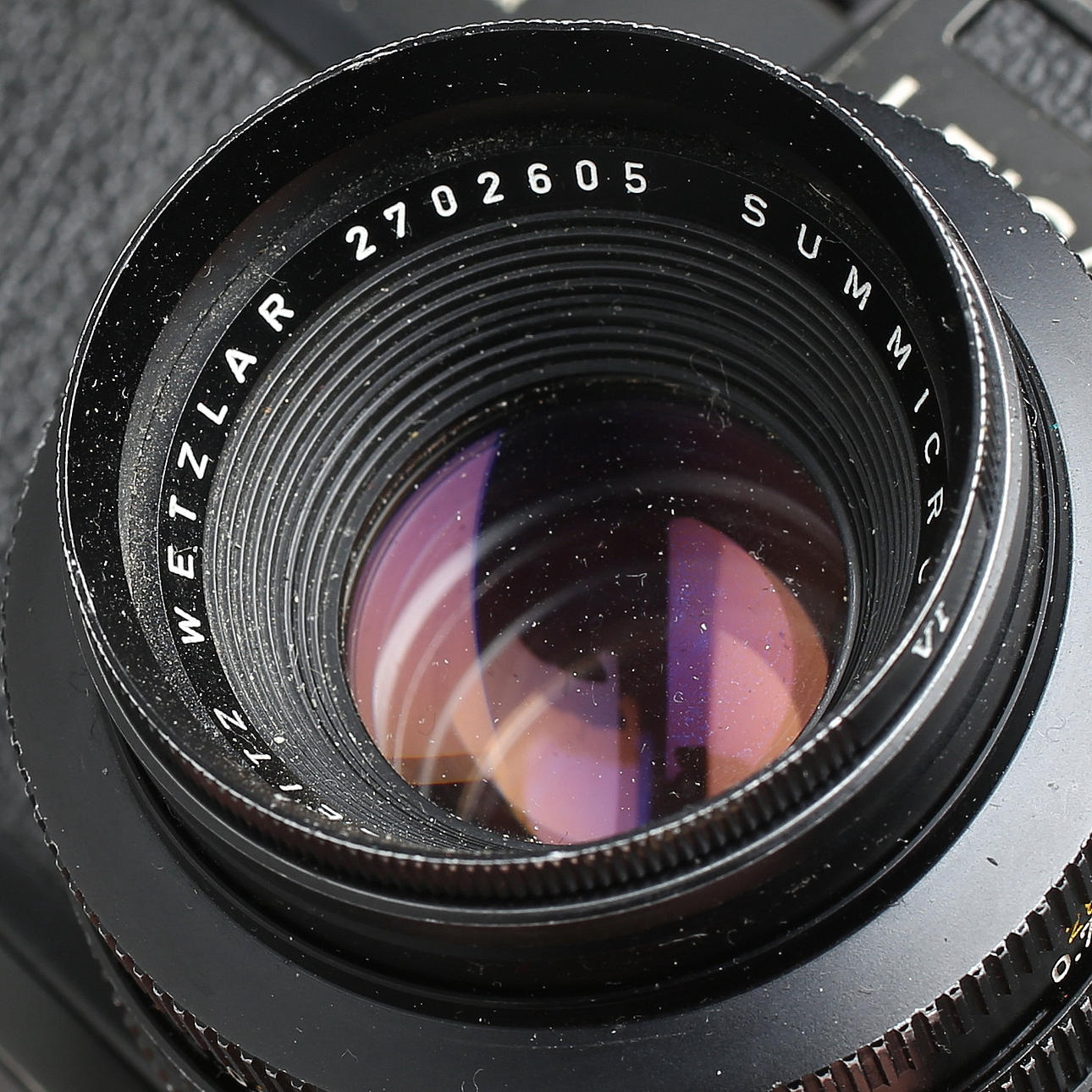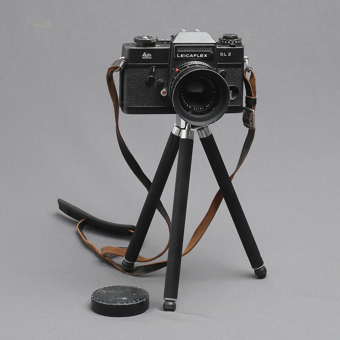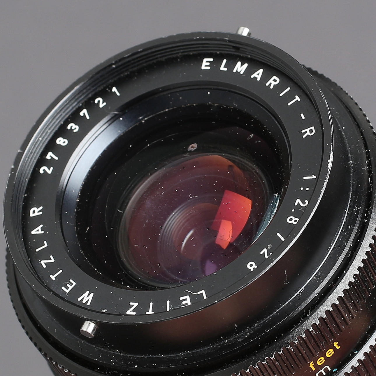 Camera serial number 1420213 3 lenses, of which 1 mounted on camera: - Leitz Wetzlar 1:2.8 / 28, Elmarit - R, 2783721 - Leitzs Wetzlar 1:4 / 180, Elmar - R, 2819101 - Leitz Wetzlar 1:2 / 50, Summicron - R, 2702605 Flash, tripod and bag included.