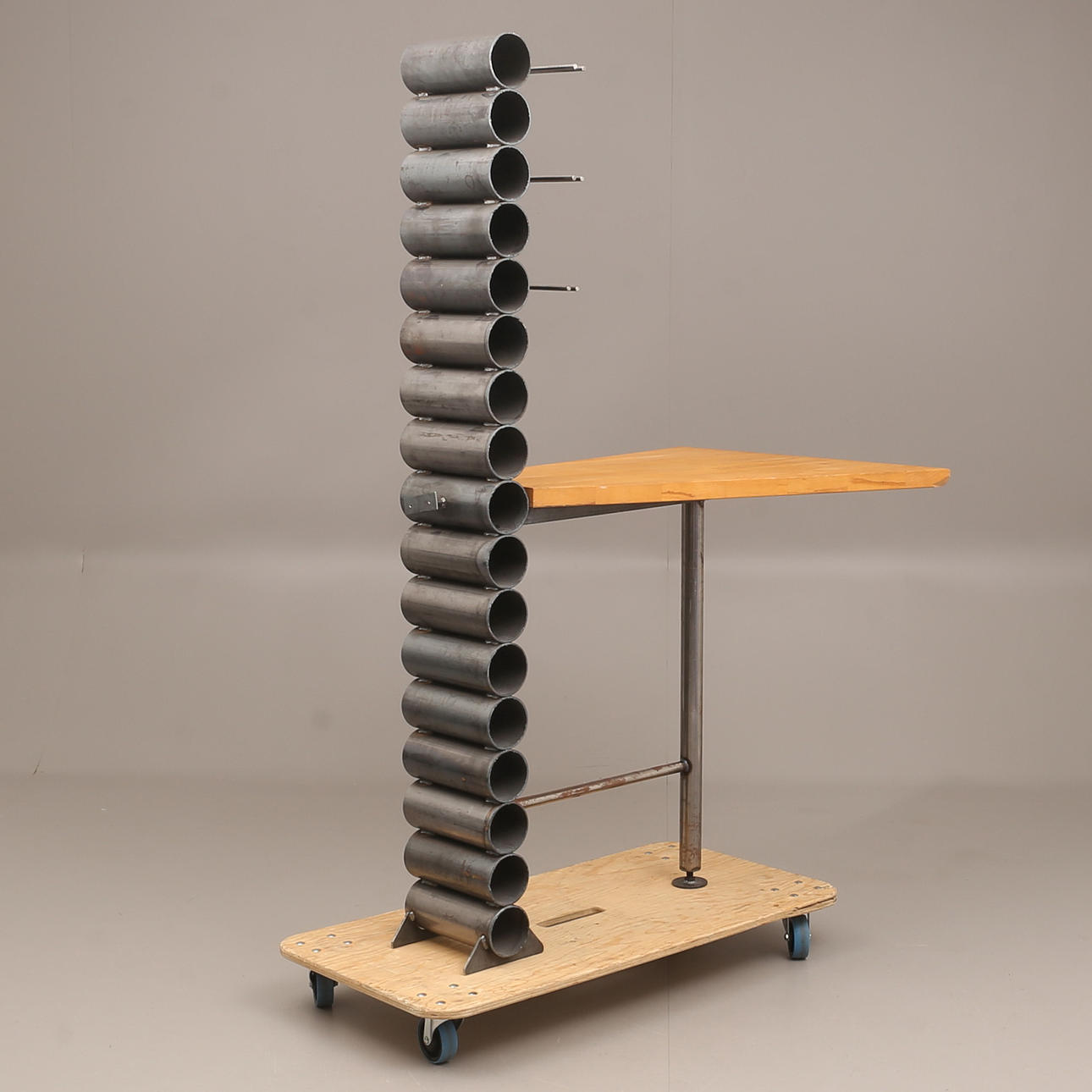Custom built table with wine rack. Table height approx. 98 cm, length approx. 100 cm, width approx. 84/30 cm.