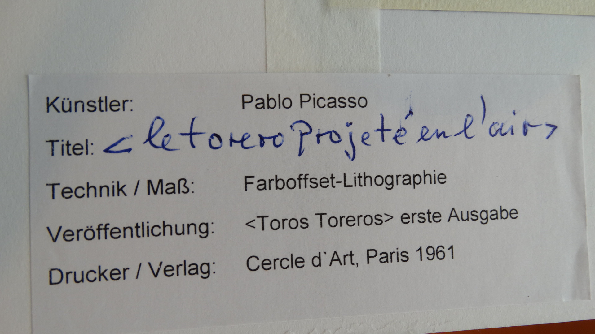 1353416. PABLO PICASSO. Original offset, 1961.