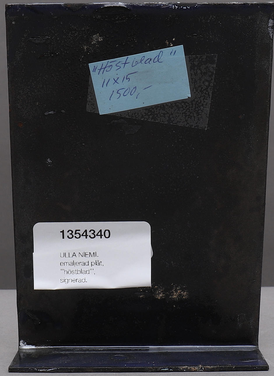 1354340. ULLA NIEMI. enamelled plate, ''autumn leaf'', signed.