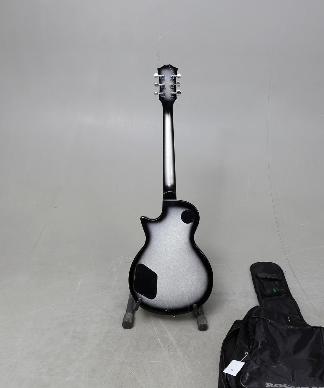 Les Paul replica by Keiper. Silver/black sunburst finish. according to information, the microphones must have been replaced. soft case.
