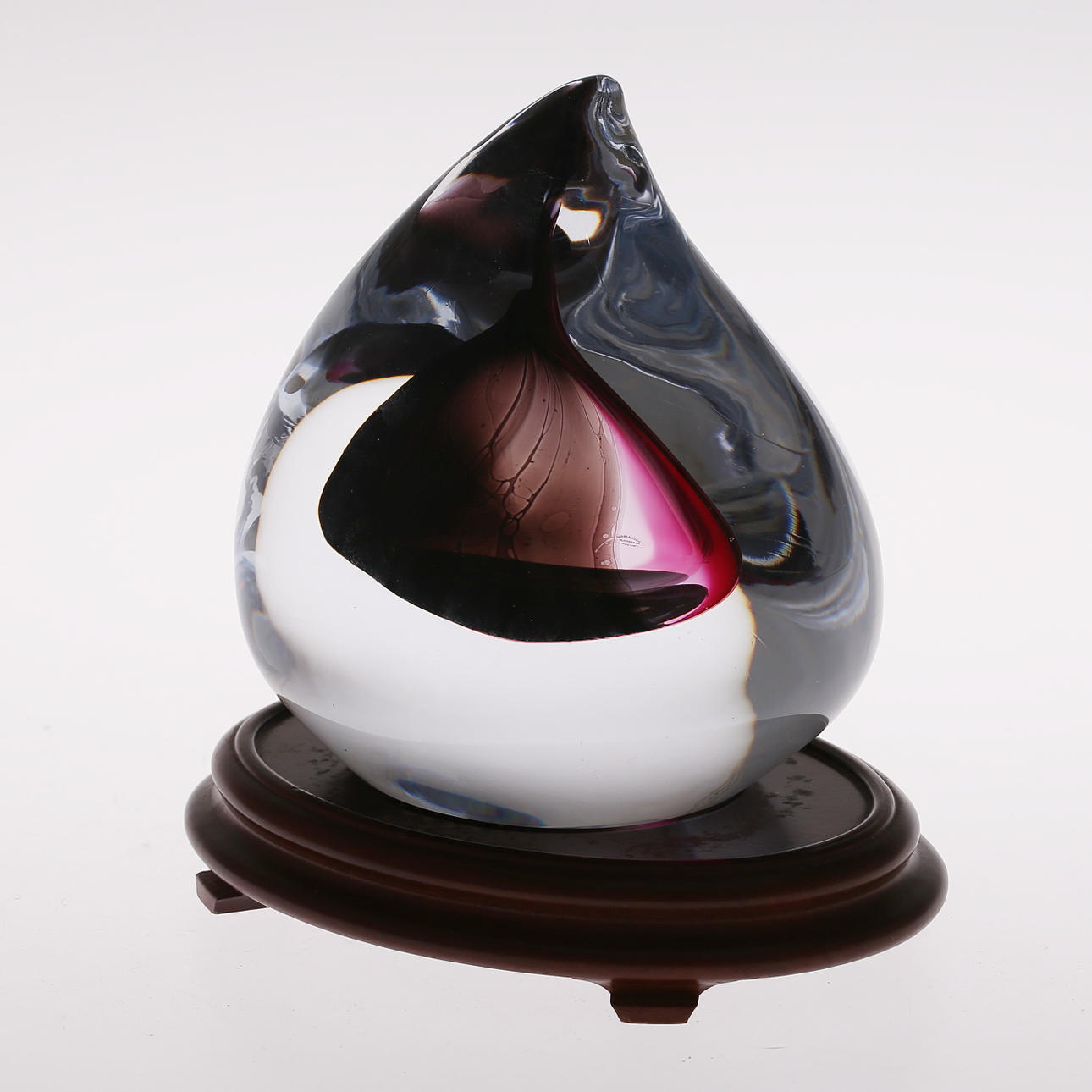 On wooden plinth. Total height about 20 cm.