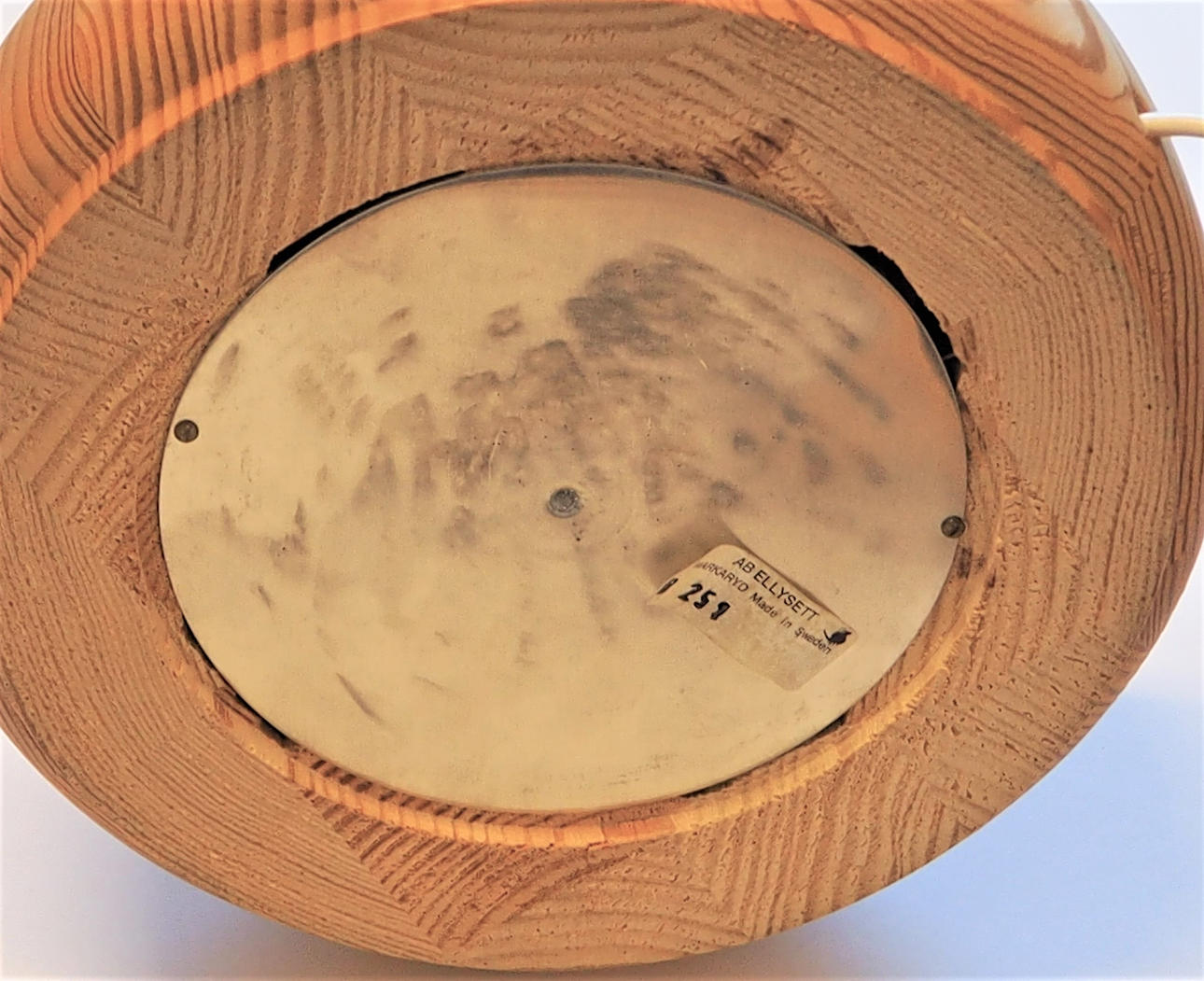 Foot in pine, top with chip rings, fabric-covered screen. Total height 65 cm, lampshade diameter 40 cm.
