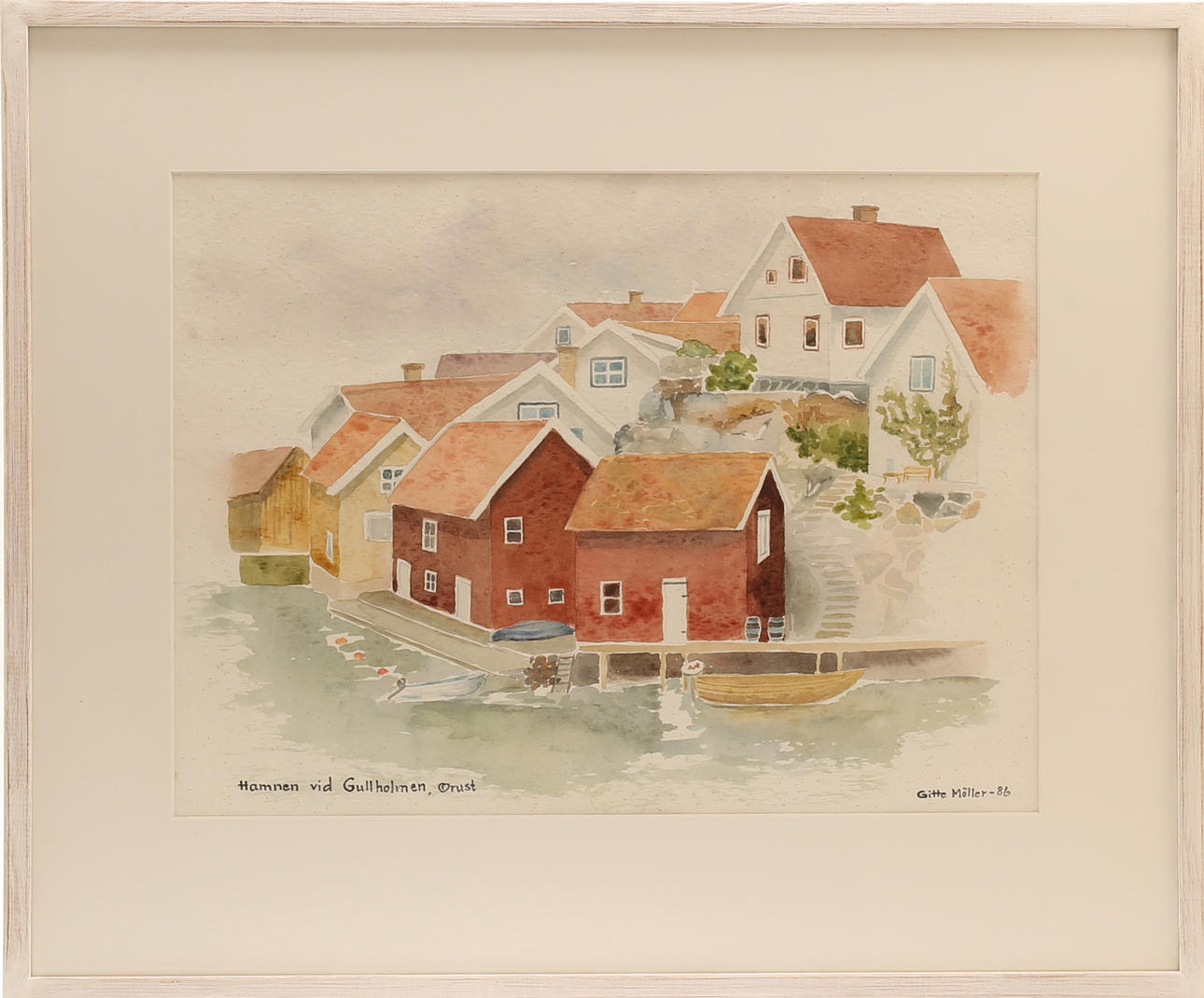 GITTE MÖLLER. Watercolor, "Gullholmen, Orust", signed.-86.