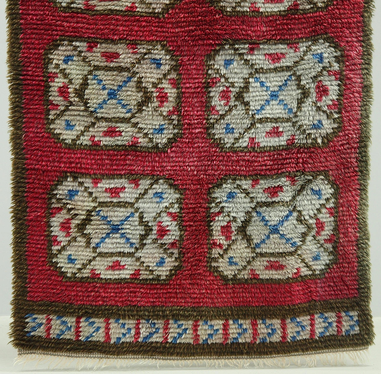 Worn lashes, Normal wear and tear, age wear. Has been used as wall hangings, hence sewn channel on one side.