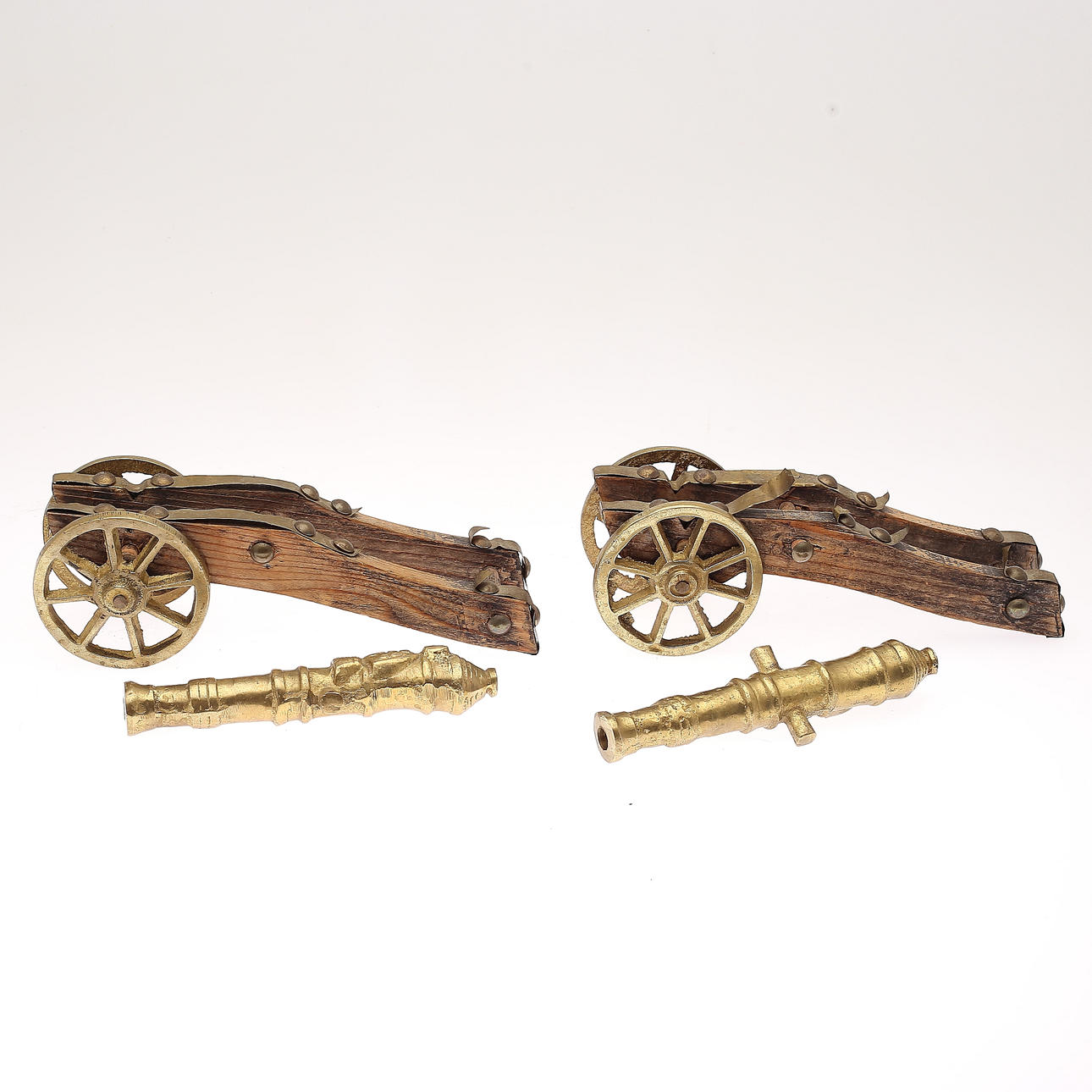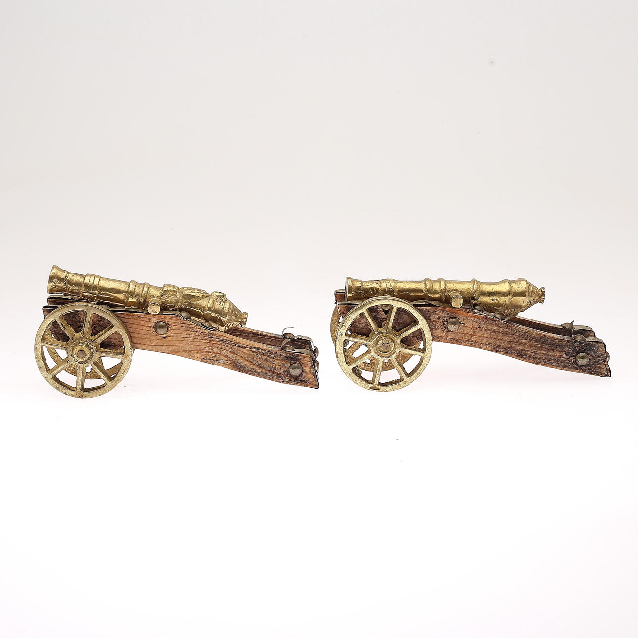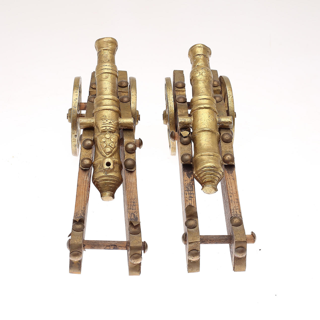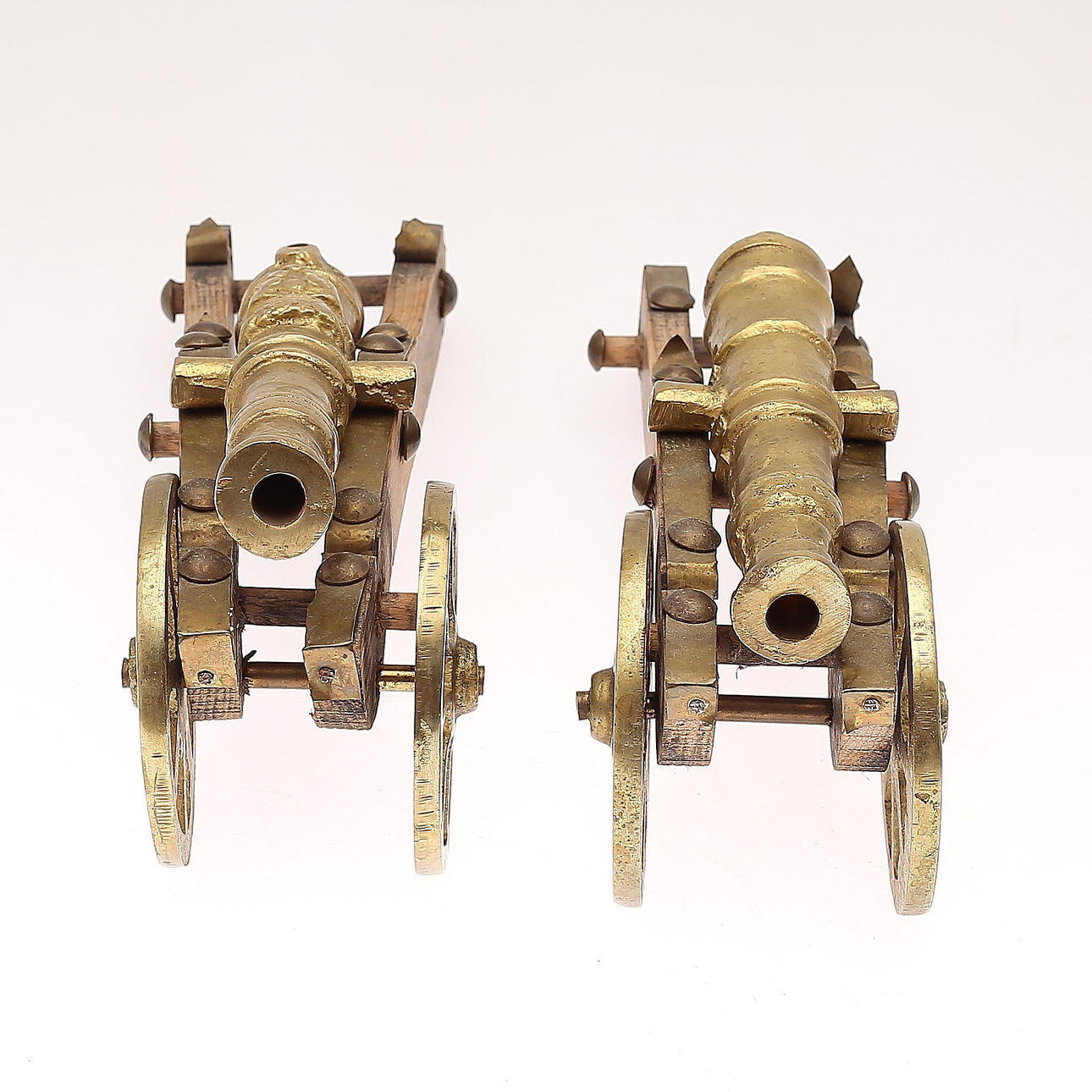 1371621. TABLE CANNONS, 1 pair, brass, 1900s.
