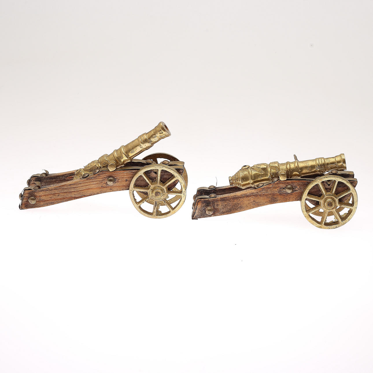 TABLE CANNONS, 1 pair, brass, 1900s.