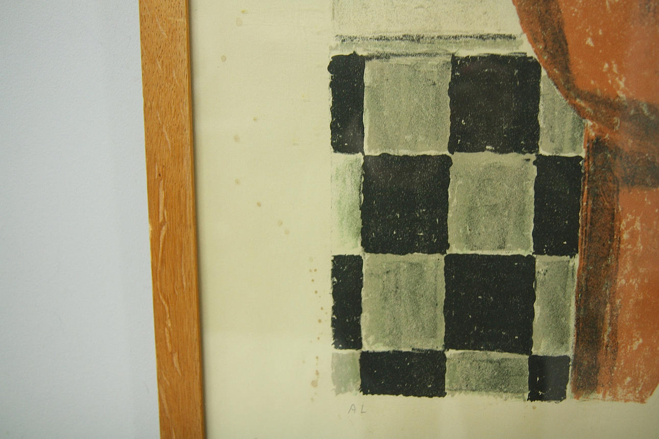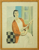 Mandolin player, image size 59 x 42. Signed, marked AL, and dated.
