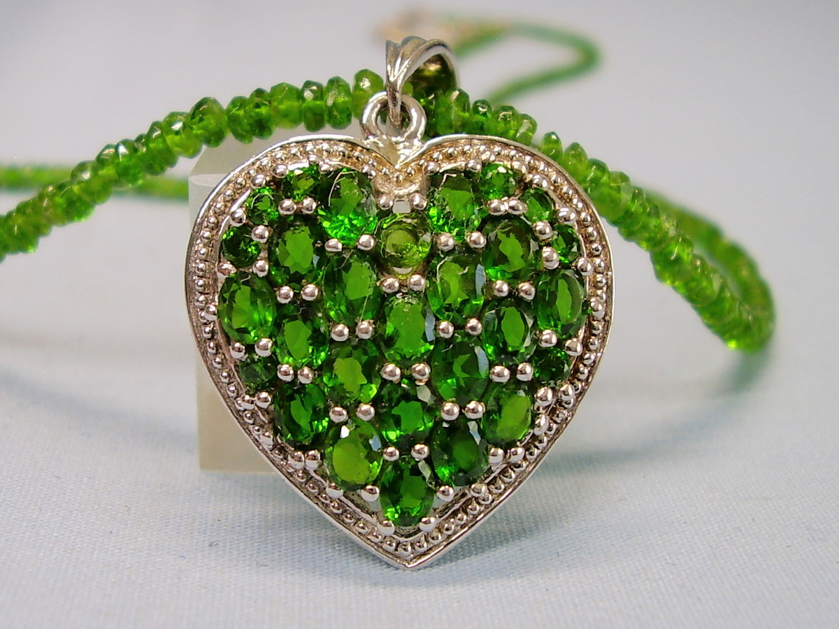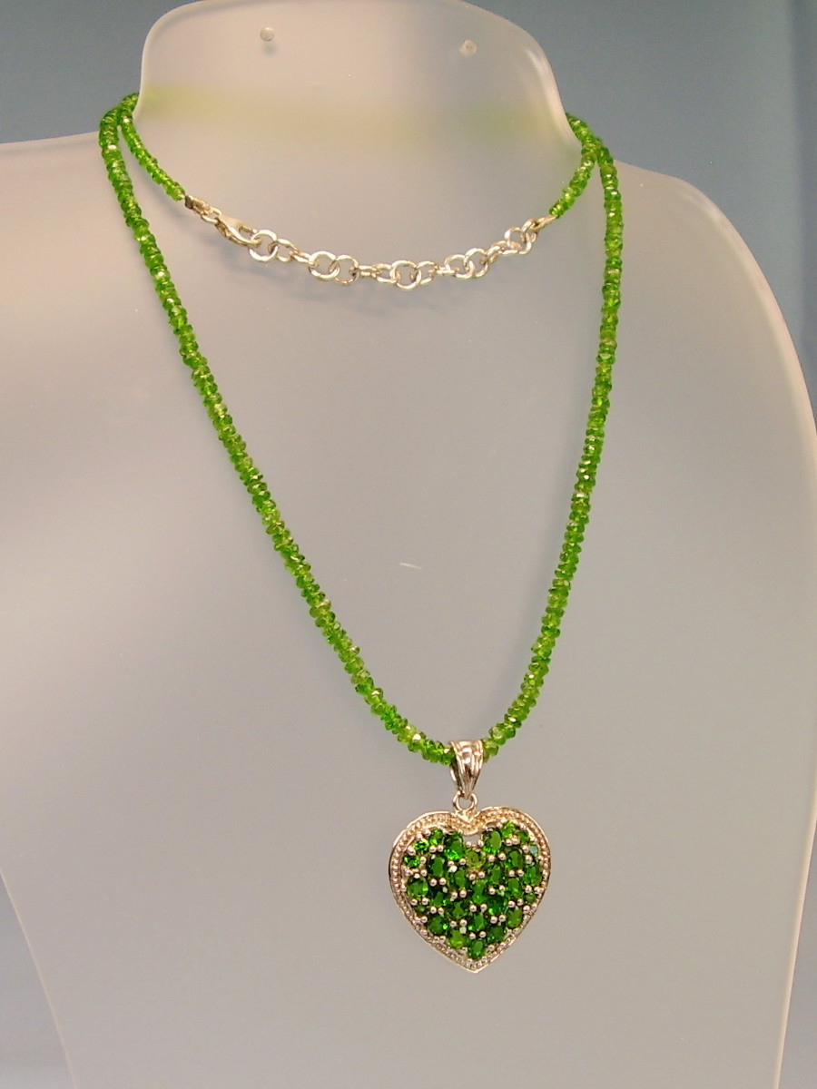 1372954. CHROMEDIOPSIDE NECKLACE WITH HEART PENDANT.