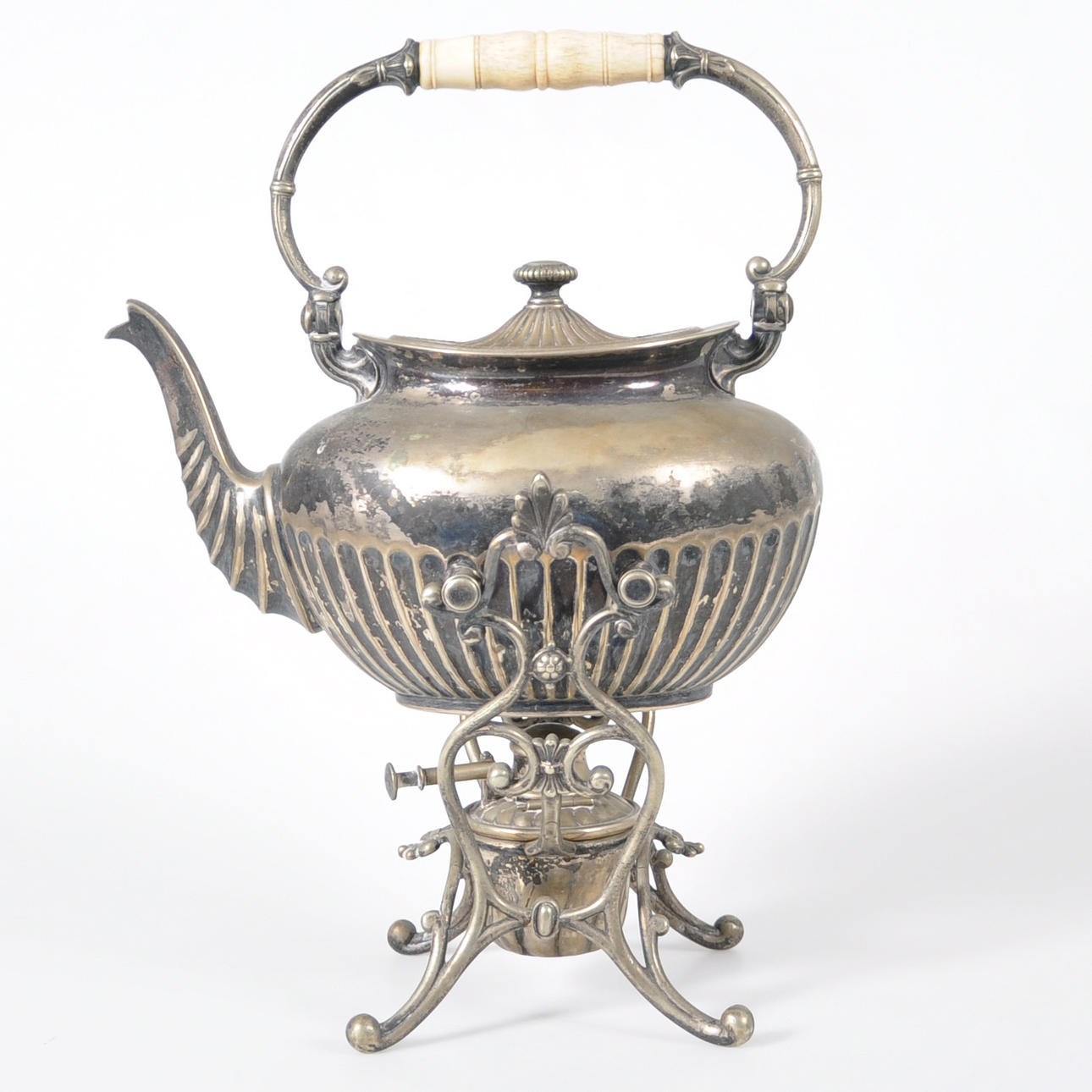 Oval shape with rounded decoration, handle in bone, on openwork stand, total height approx. 35 cm.