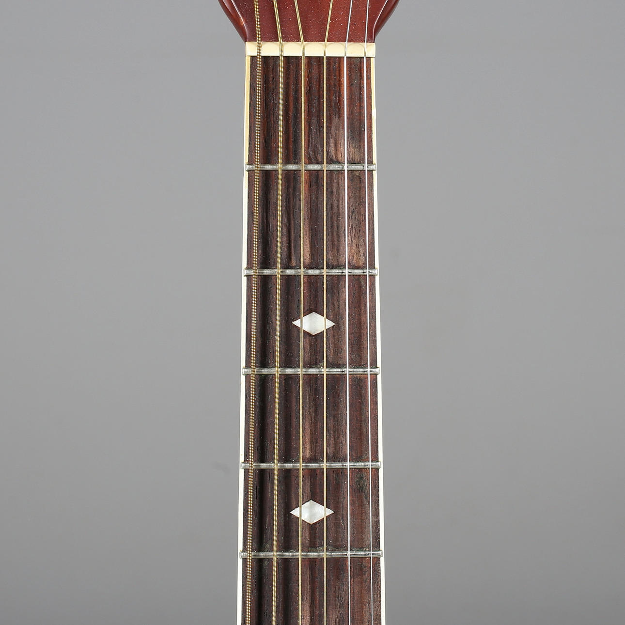 Normal wear and tear on neck, minor marks on body, two cracks in veneer, otherwise good condition.