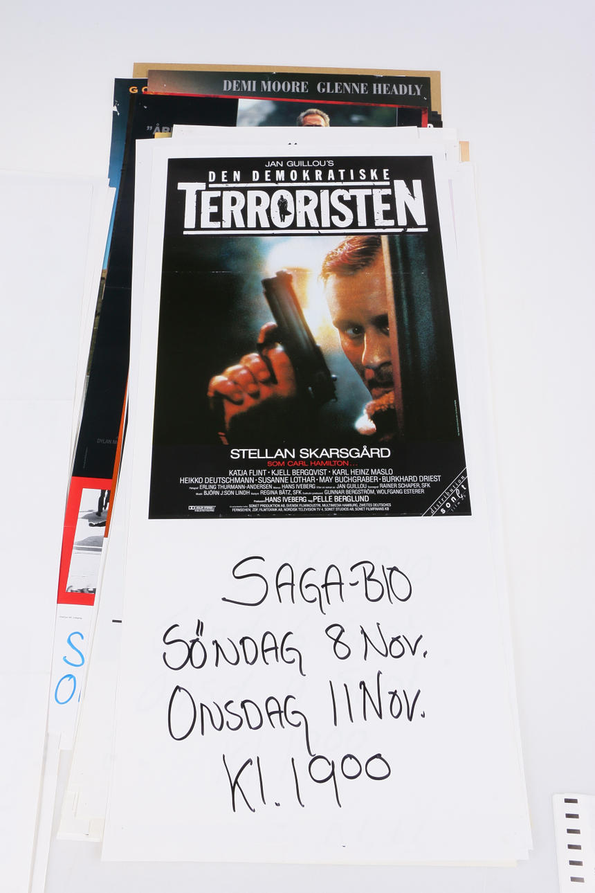 Keep your paws away from my daughter Zorn Autumn legends Shadow over Rangoon Oxen No one can be safer Little man tale While you were sleeping Kurt Olson, the film about my life One in a million Zorn The man on the balcony Emil and the pig's knuckle The thief and the junk Black Lucia The pill thriller The democratic terrorist 2 pcs Have a wonderful life Yrrol The fantastic baker boys Agnes Cecilia, a strange story No 1 at the secret service, James Bond The Batan patrol Dirty heroes Assassination Agent of the times Spring for Frankenstein Alarm in the Gestapo Underground The democratic terrorist French kiss Big and small men Late summer days Shadow over rangoon Good evening Herr Wallenberg 2 x Imse vimse spider Jesus from Montreal Wanted Medicine Man In the firing line Firestorm If looks could kill Murderous friendship Sommersby Gilbert Grape Lonely young woman seeks Maverick.