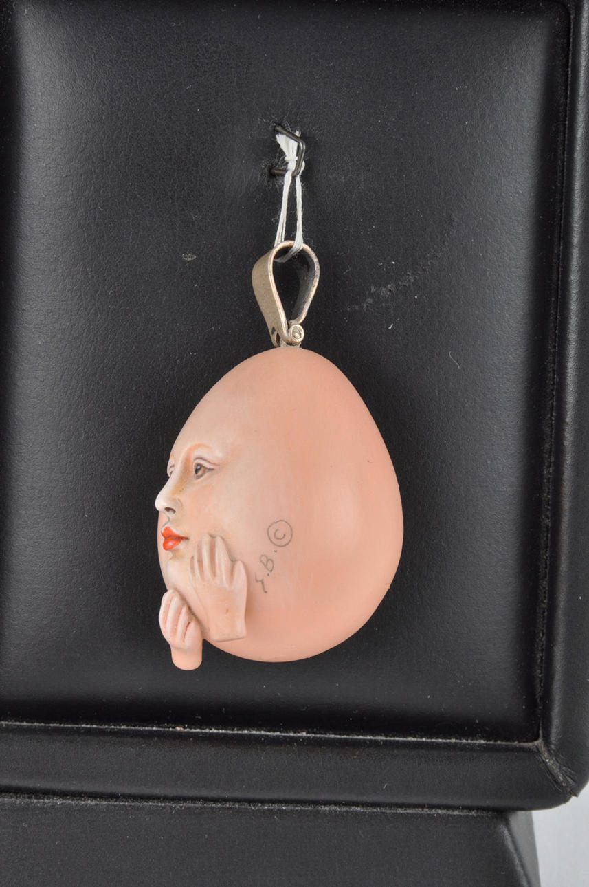 SERGIO BUSTAMANTE. "egg face". Resin pendant.