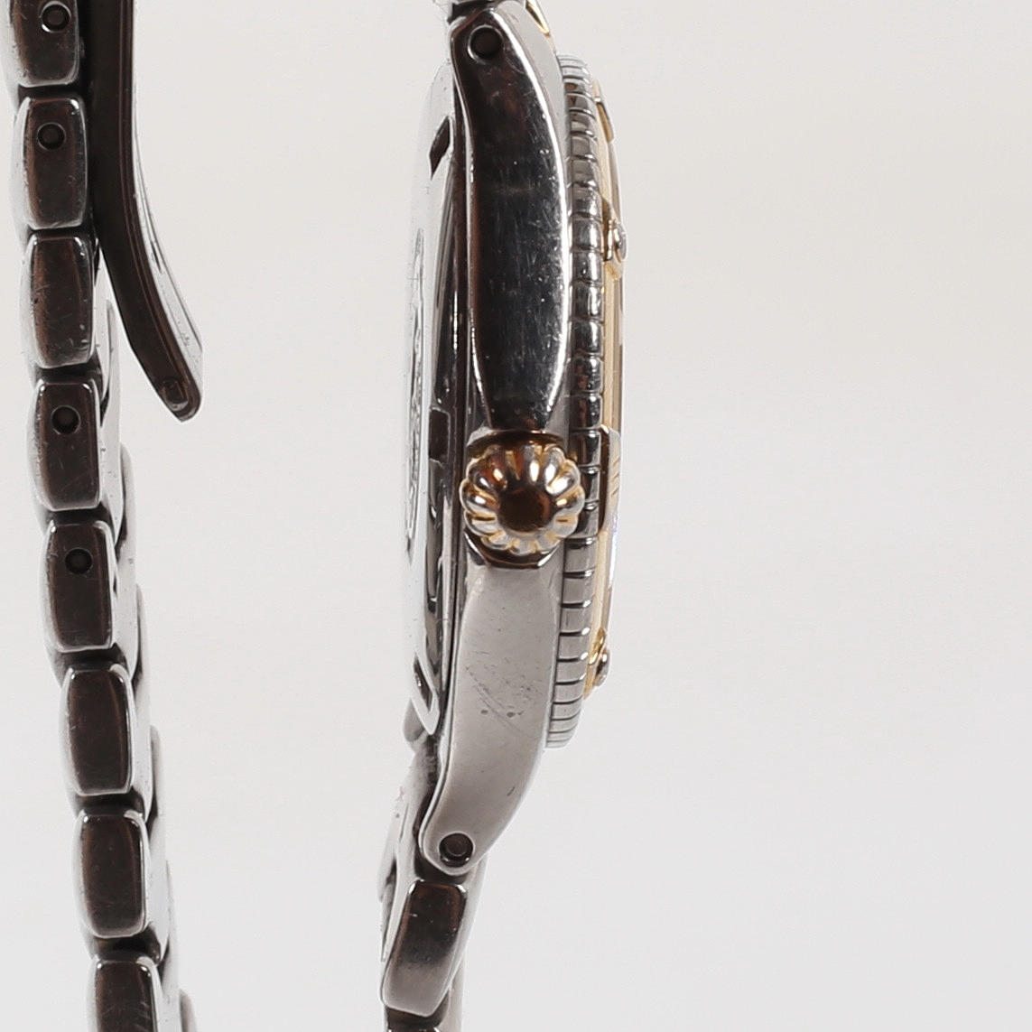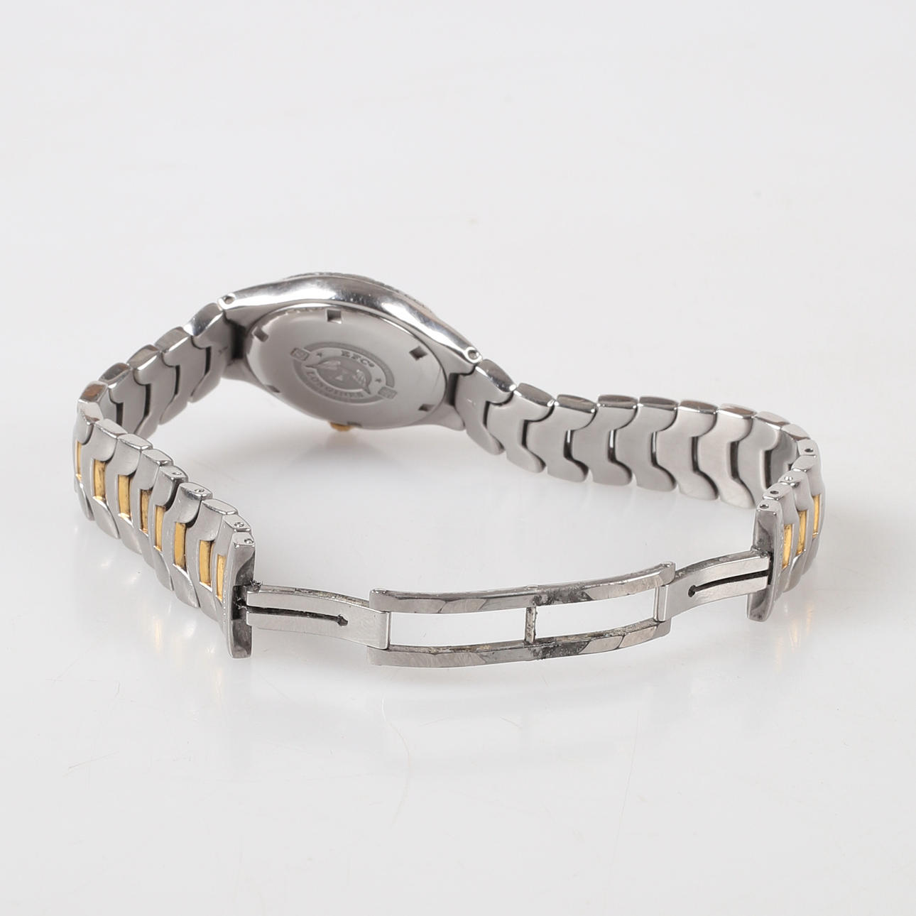 Case and link in steel, date hand, quartz movement, 7 jewels Movement L 250.2 Case diameter approx. 28 mm.