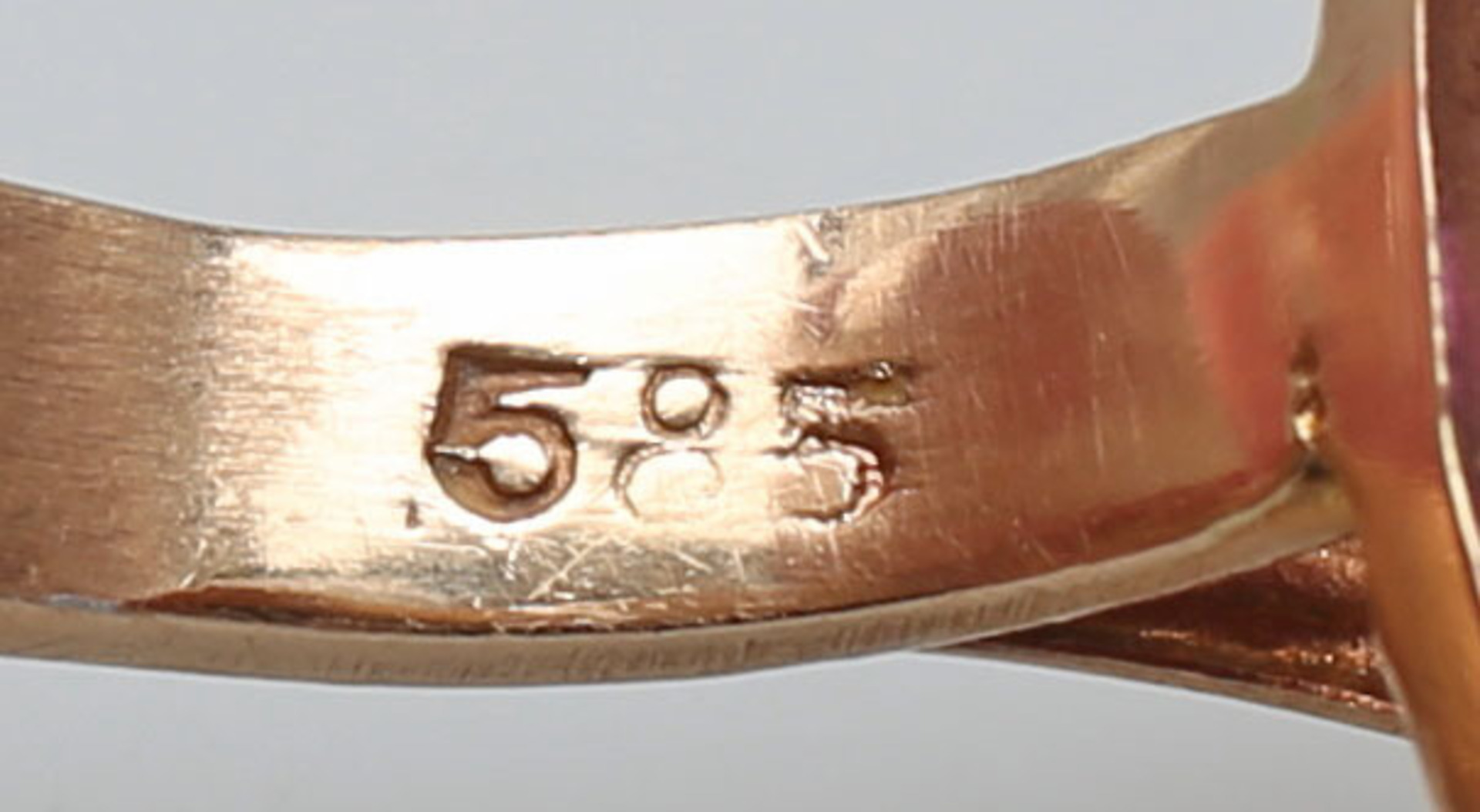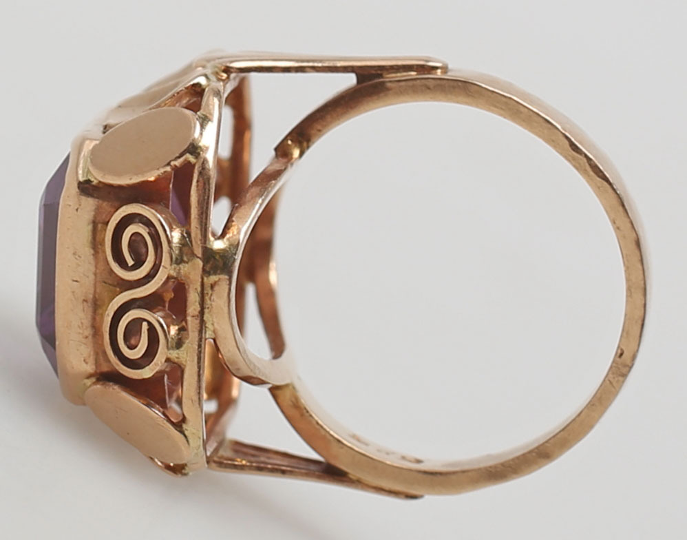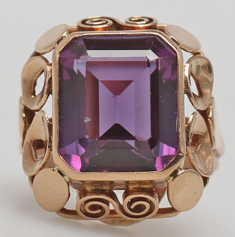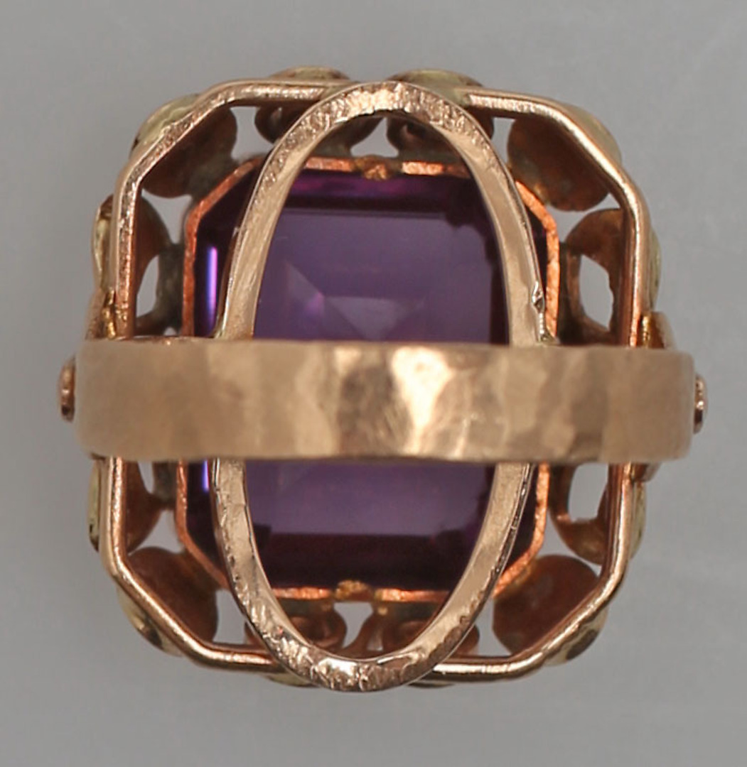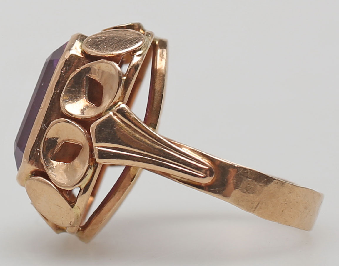 140446. RING WITH PURPLE STONE, red gold, 14K.