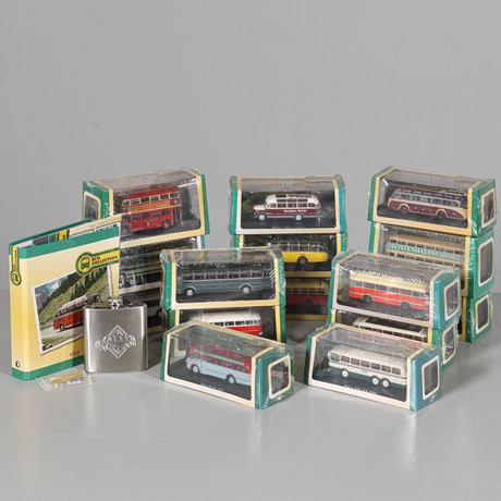 Original packaging Bus information included as well as binder and board Scania Vabis D11 1964, length approx. 16 cm, wrapped packaging Fiat 306/3 Interurbano 1972, length approx. 15 cm, wrapped from Mercedes-Benz LoP 3500 1935, length approx. 11 cm, wrapped from Reo Speedwagon 1946 , length approx. 12 cm, wrapped in plastic, hood has come off Leyland RTW 1957, length approx. 10 cm, opened from Volvo B 616 1953, length approx. 12 cm, opened from.