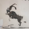 1. Bullfight motif signed 2. Bullfighter on perd against bull.