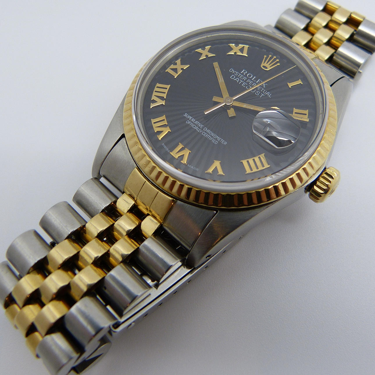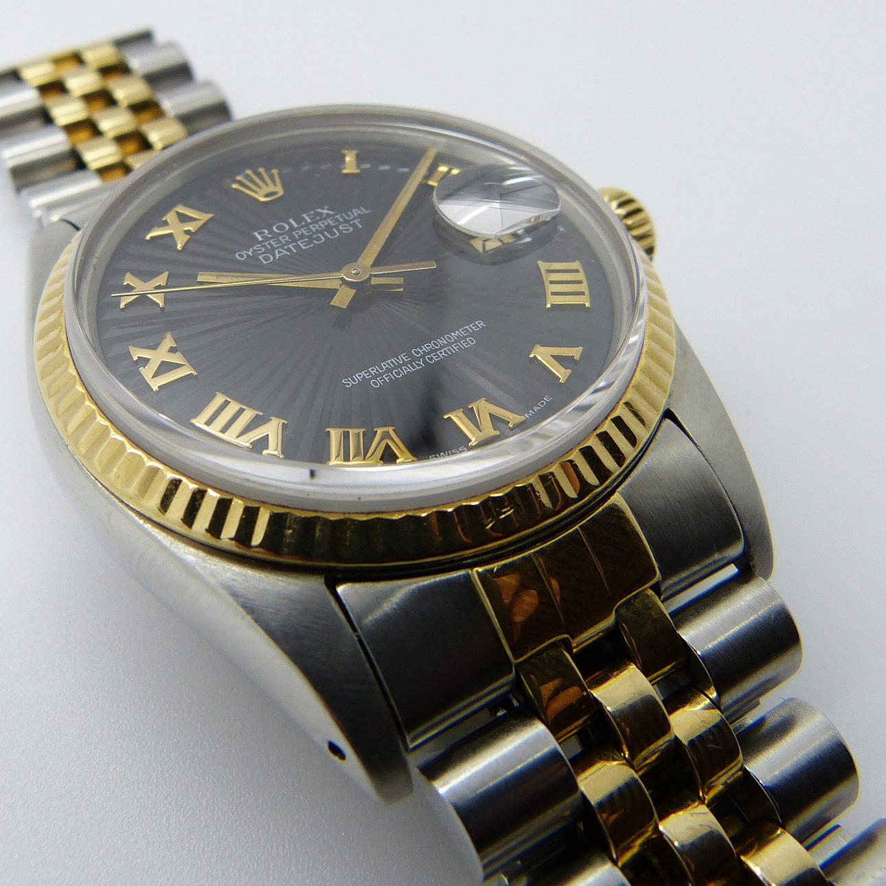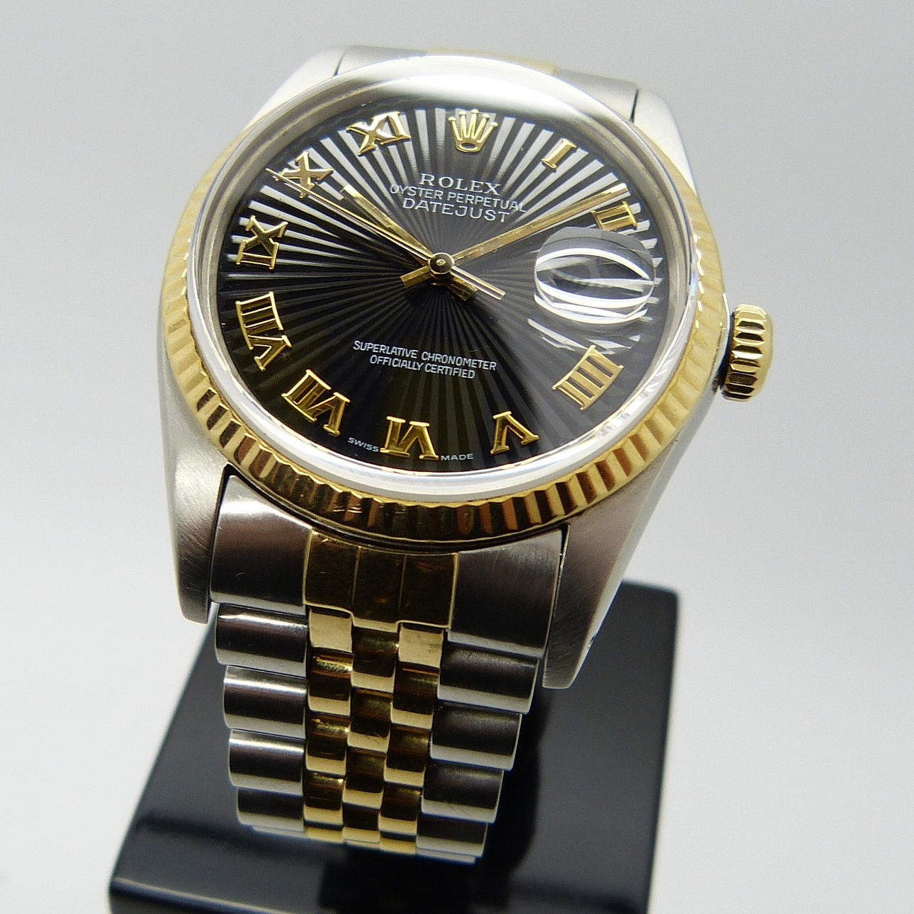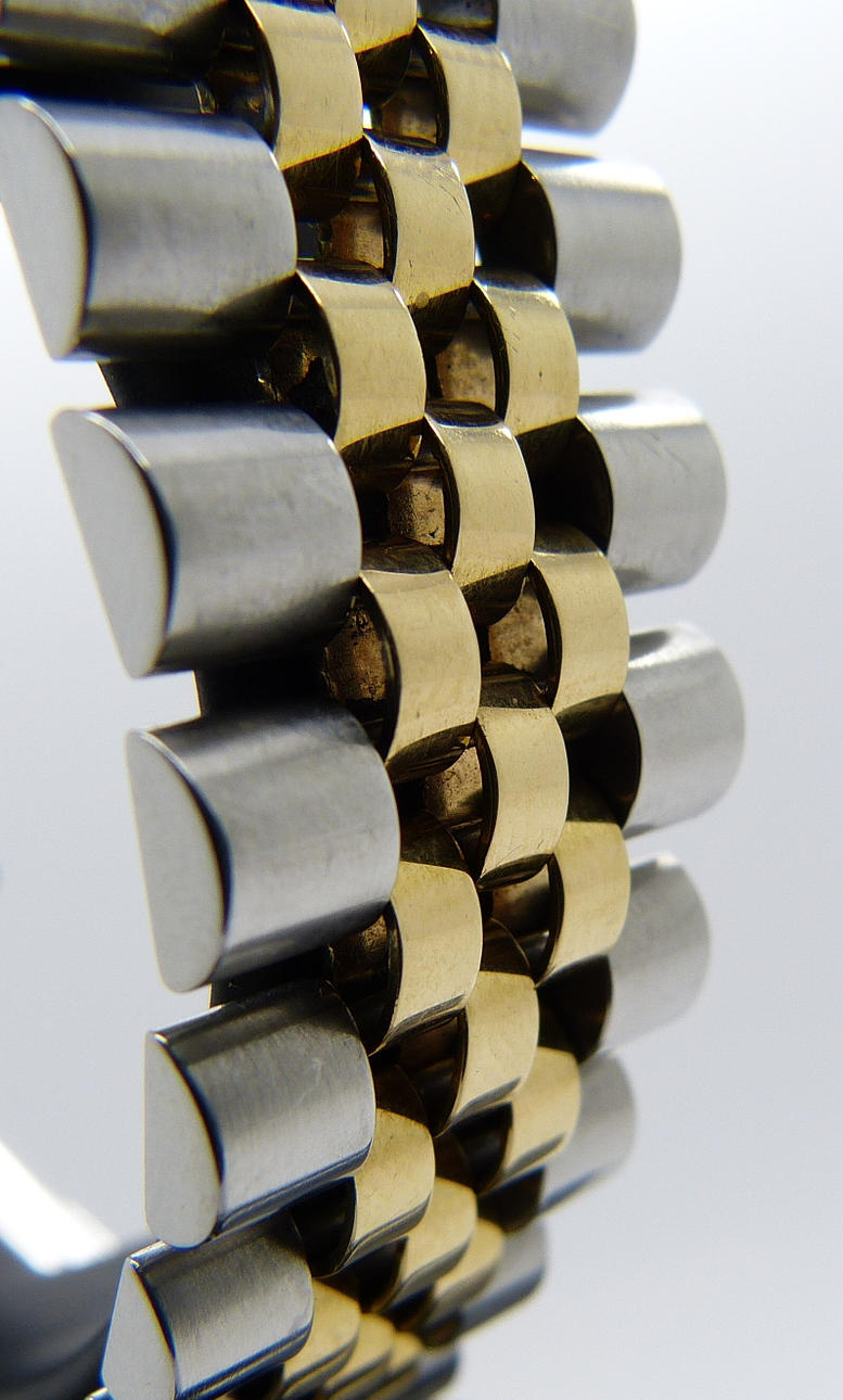 Strap: Stainless steel and bi-metal (18ct yellow gold) Rolex jubilee bracelet.
