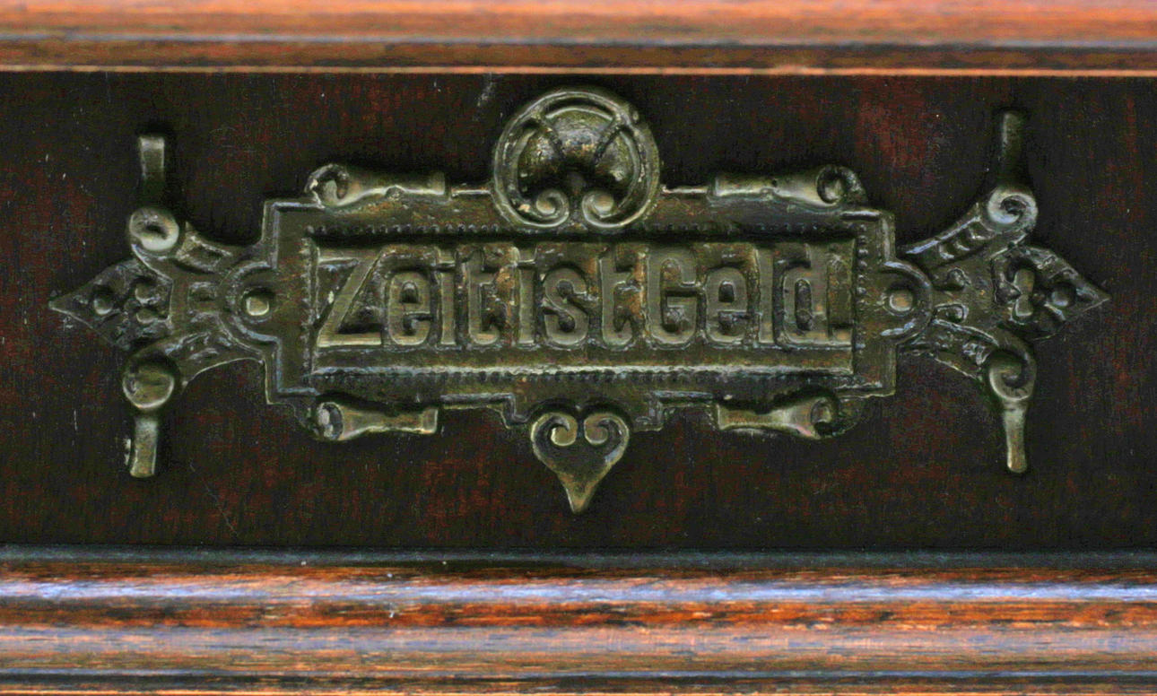 Pickling with wear. Slightly less loss. Decorative elements are missing (crown). Dial with scratches. Key for pull-up not included. No function guarantee.