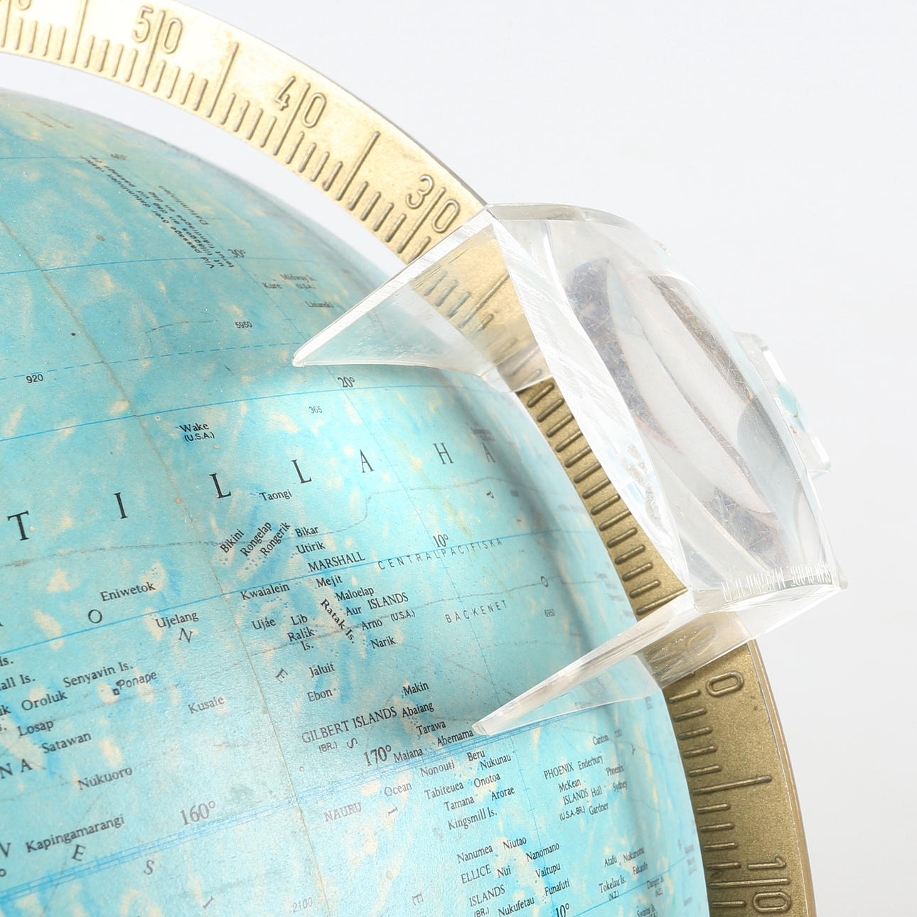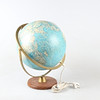 Globe with lighting, wooden base and magnifying glass, height approx. 45 cm.