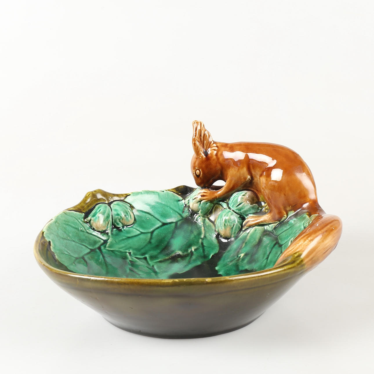 Dish with decoration of a squirrel. Height 13.5 cm Length 24 cm.