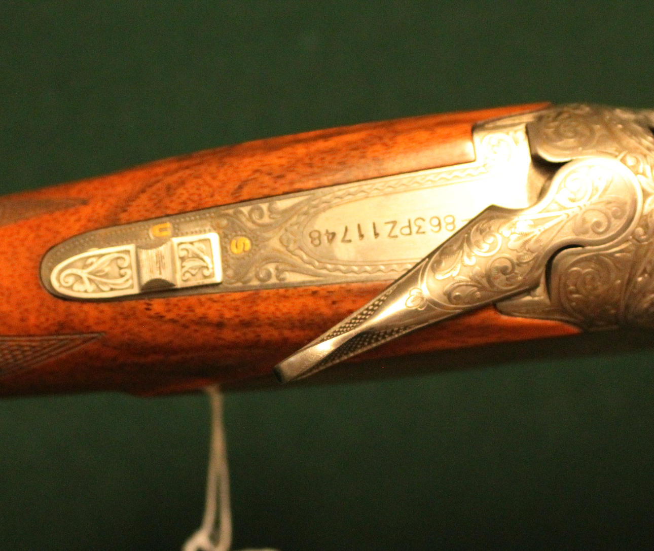 Shotgun Belgian Bock hammerless. Manufacture UN. Courage. B25 Grade B7. Caliber 12/70. Extension no. 863PZ11748. Spout length 70cm.